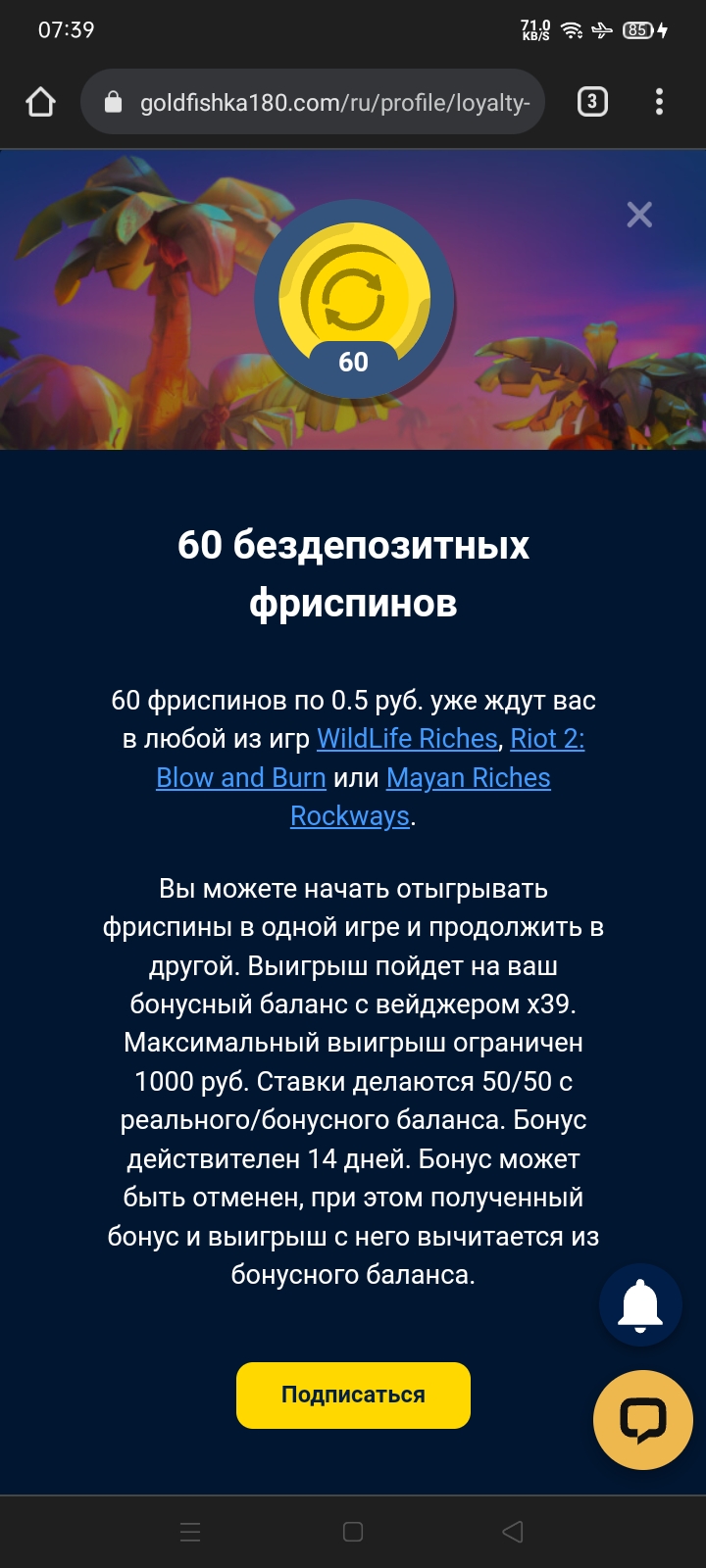 Максимально доступная сумма вывода после отыгрыша бездепозитного бонуса составляет не более 25 USD/EUR/CAD/AUD/AZN | 100PLN | 100 BRL | 300 TRY | 500 UAH | 1.000 RUB |