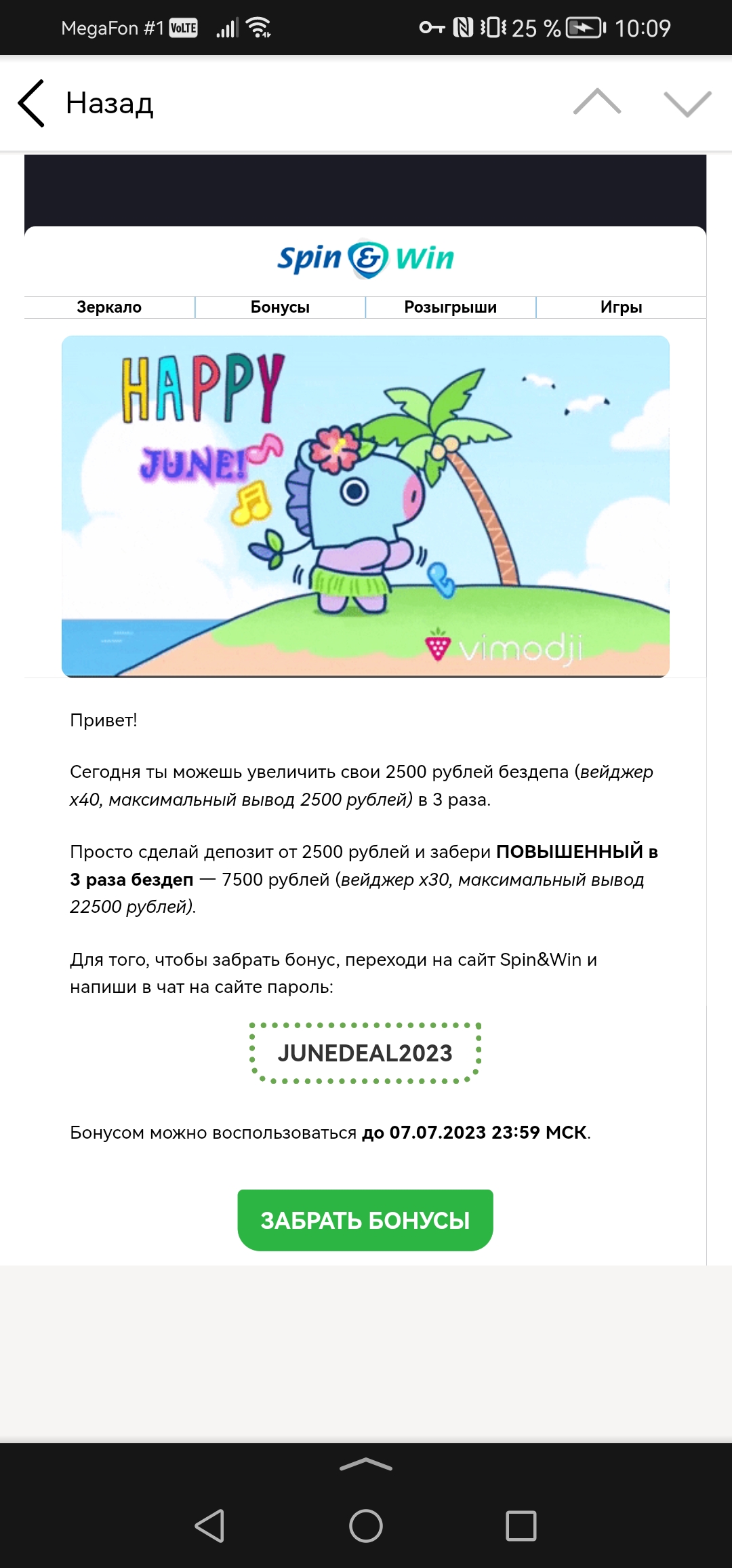 Чтобы иметь возможность вывести выигрыш с бездепозитного бонуса после завершения отыгрыша вейджера, игроку необходимо внести хотя бы минимальный депозит и выполнить требование по ставкам х3.