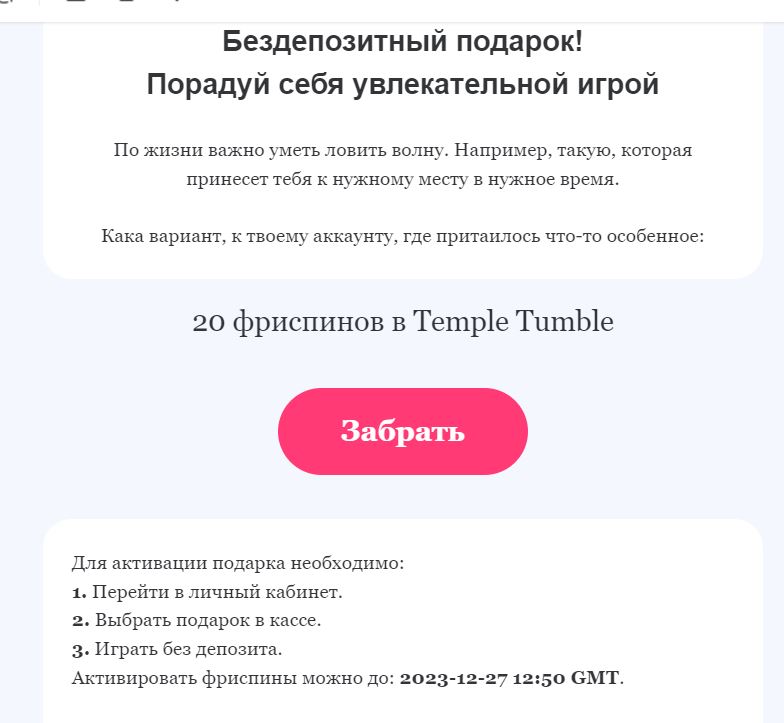 Промокод доступен до 27 декабря и работает только для получателей этого письма.