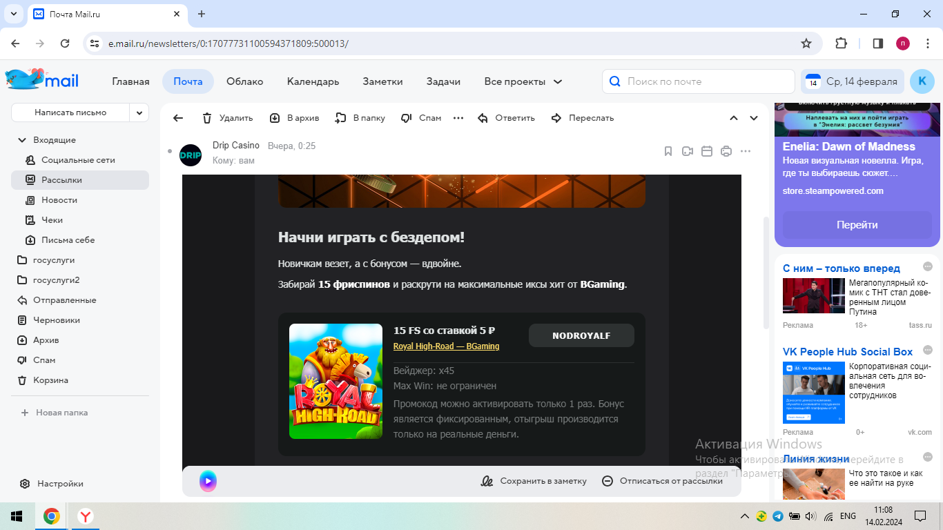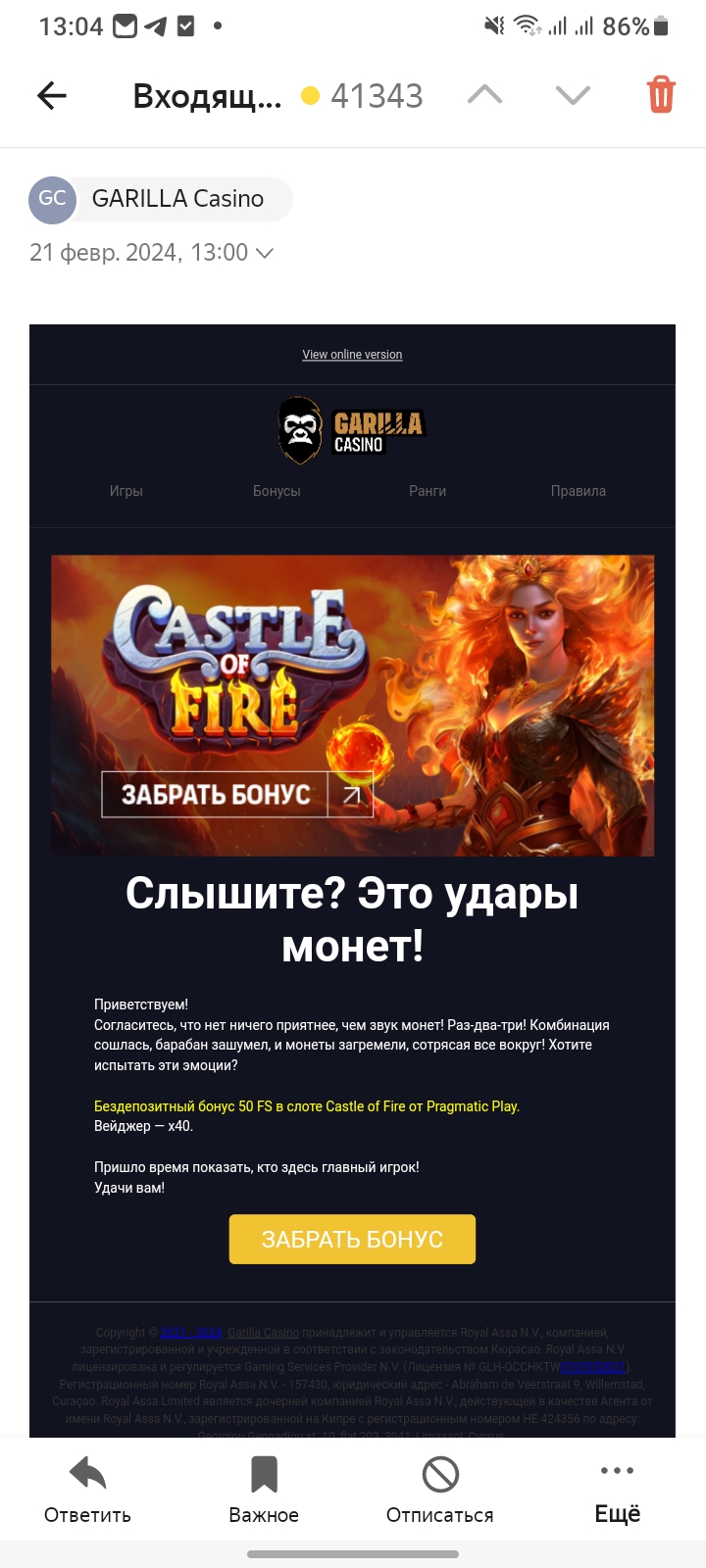 Фри Спины доступны до 18 февраля. Вы можете использовать их один раз в течение акции. Промо-коды доступны только получателям этого письма. Выигрыши от спинов зачисляются на баланс JET и могут быть обменены на любую валюту.