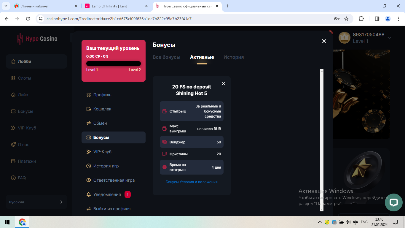 ✅ Введите промо-код в разделе Бонусы