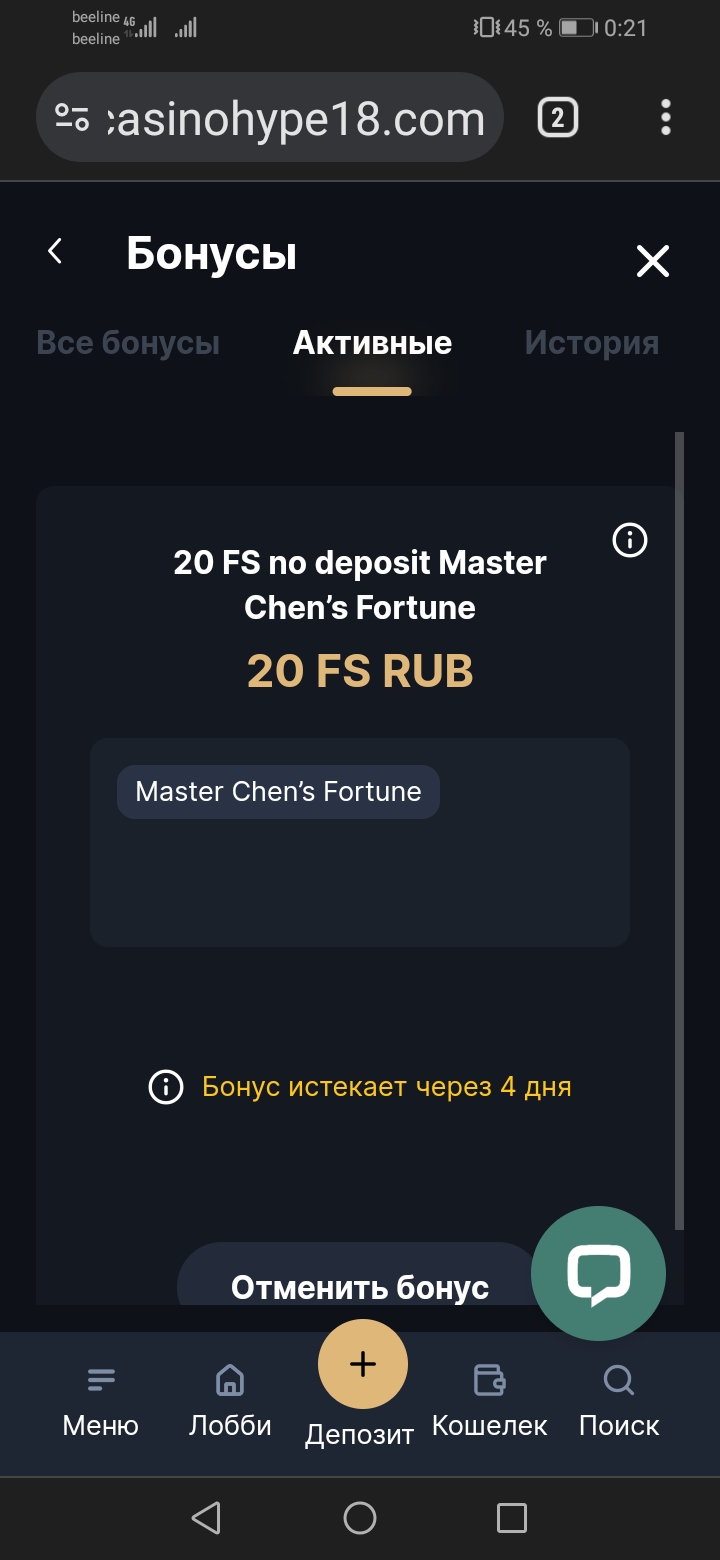 У меня только 20 фриспинов...HYPE CASINO