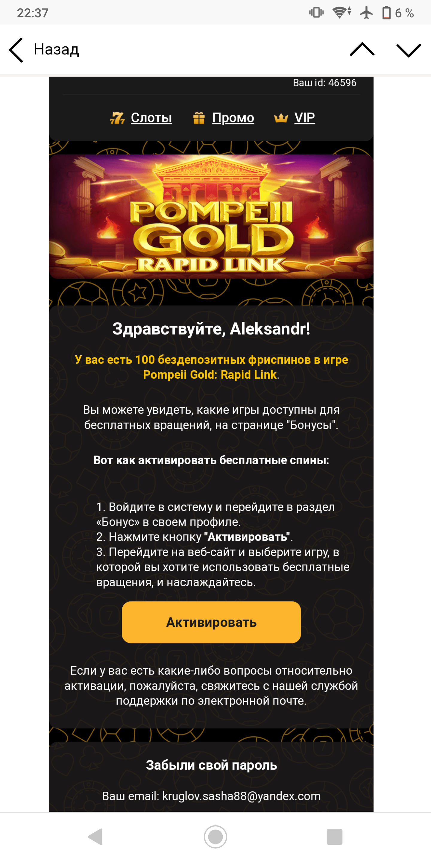 Пришло на почту. Дают 1 к, отыгрыш х 30 в одном слоте от тандер а в биг фин бей. Нужна верефицировать аккаунт, чтобы промокод ввести. Кому может надо.