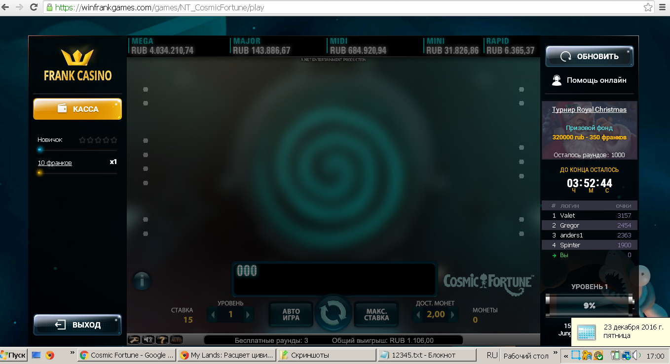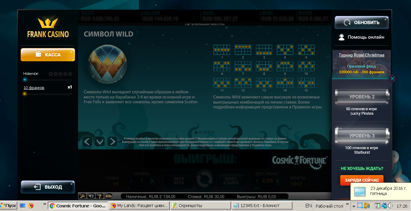 насыпало 17.5 слил в спейс,еще в casinoroom дают деперам 25фс в сикрет оф кристмас,код xmas16