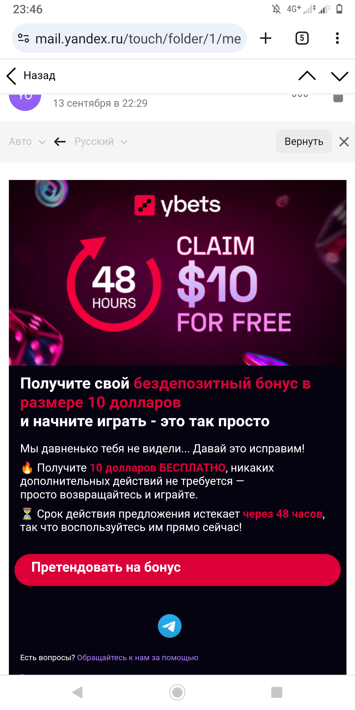 В unlim письмо пришло