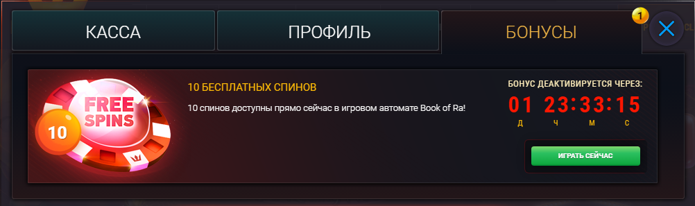 есть мне тоже дали только накуй их себе пусть засунут 10 спинов по 1 линии со ставкой 10 руб только толку ноль хрен че поймаешь