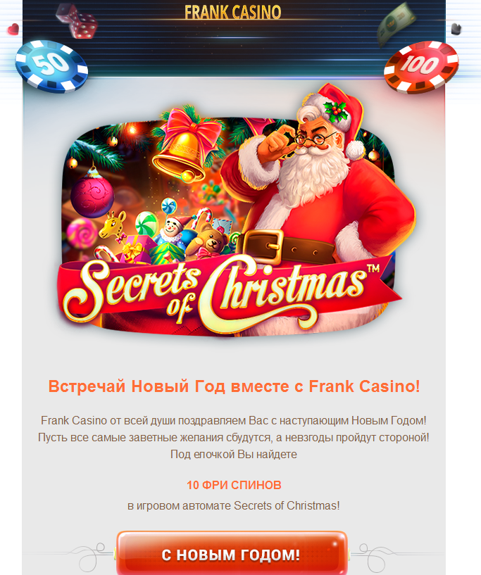 Поймал,дало 10 бесплатных спинов в слоте-Призовые фриспины выдаются на слоте Secrets of Christmas.