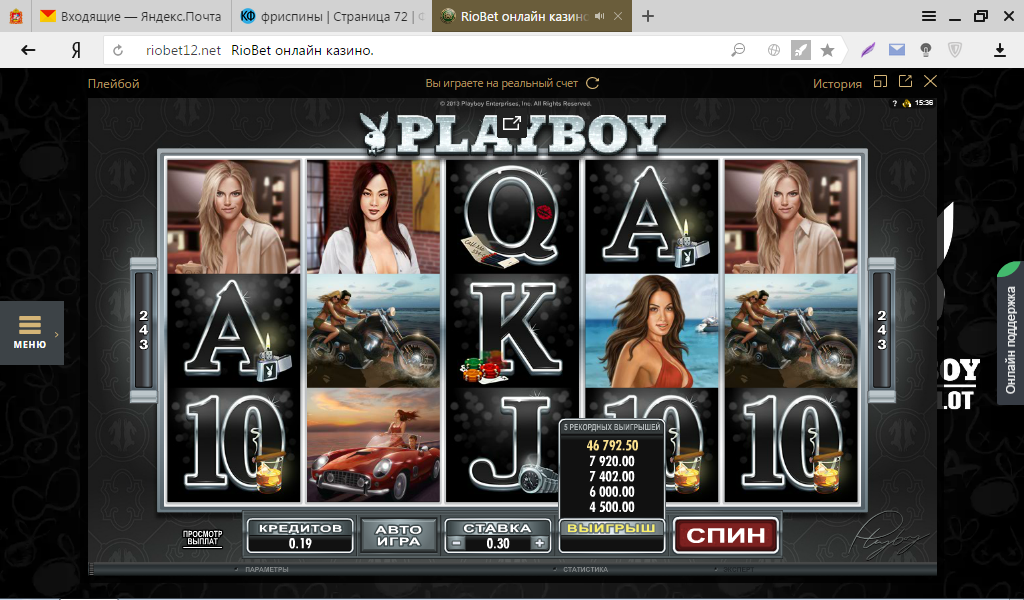так я про вообще про игры зачем обязательно в этом слоте.в плейбой я играю когда денег нет))) а про твой бонус просто обидно как то отбить.на счету допустим тысяч 5 а на счет только 250 переходит.и попробуй снова подними...я вот про что