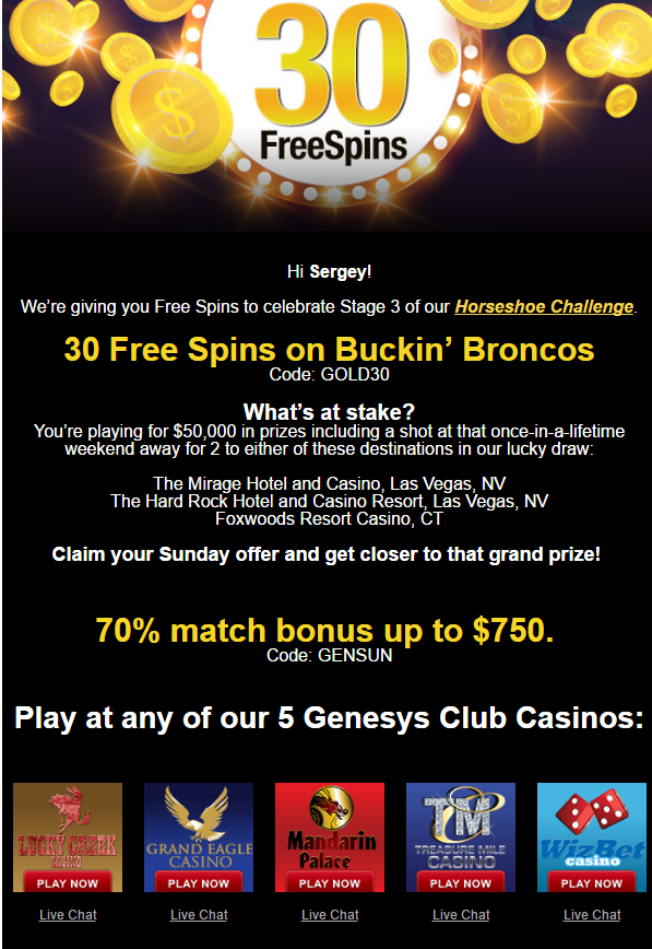 Срок действия бонусного предложения с момента отправки письма (дн.): 7. Выиграйте джекпот уже сегодня!