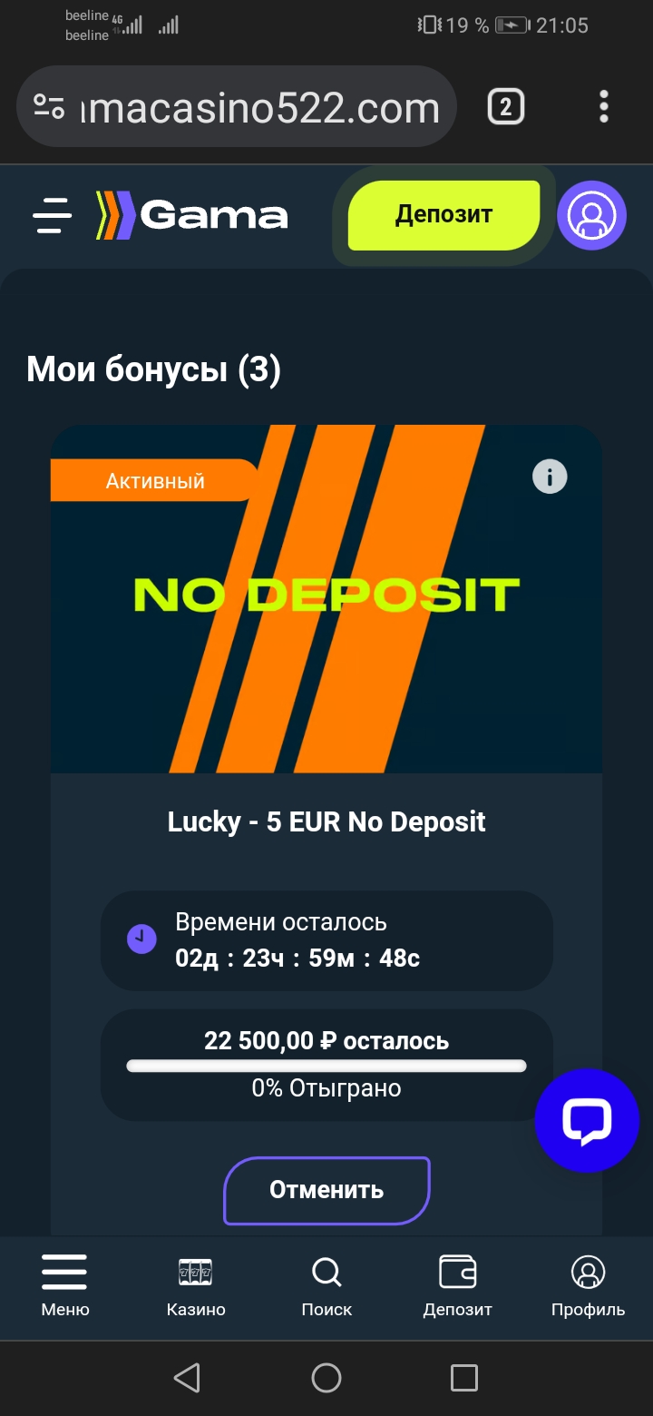 Бездеп Gama - раздача ваучеров на 3 EUR No Deposit