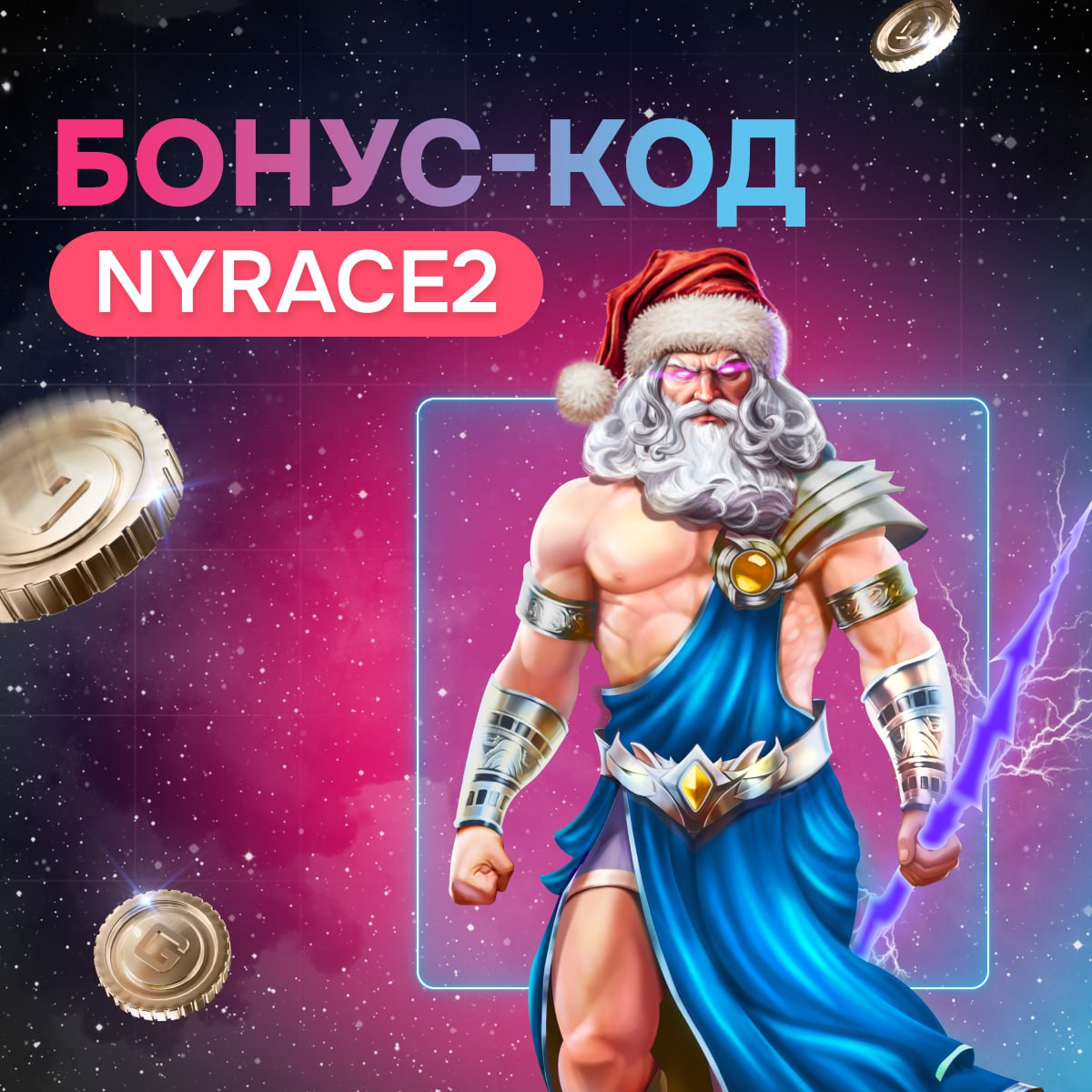 Бонус-код: NYRACE2. Ставка: 16 ₽. Депозит: от 1999 ₽. Вейджер: х30. Max Win: не ограничен.