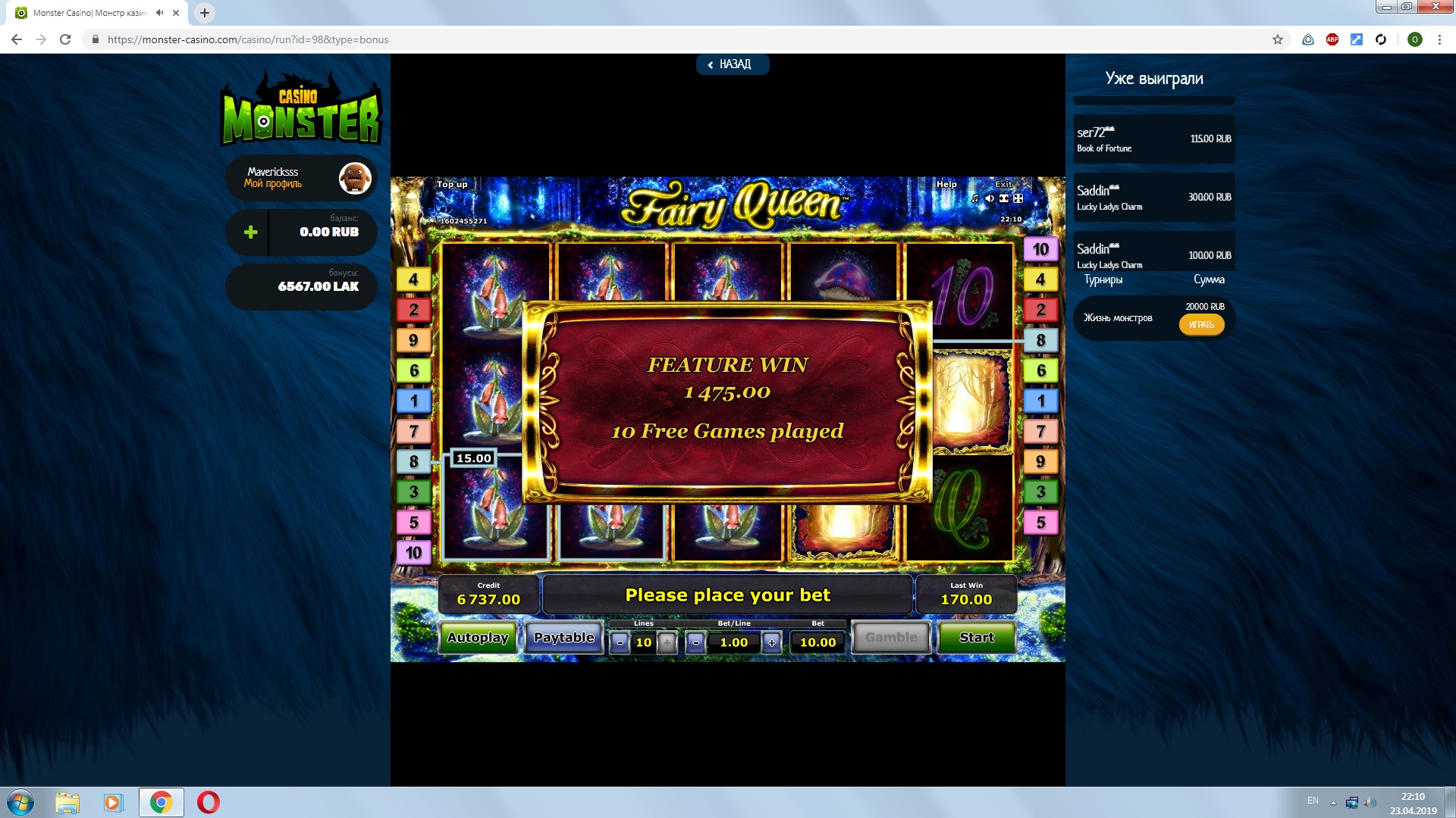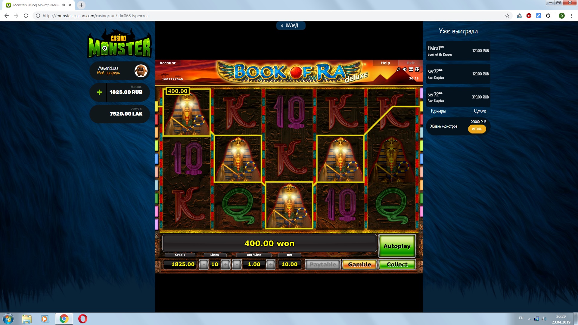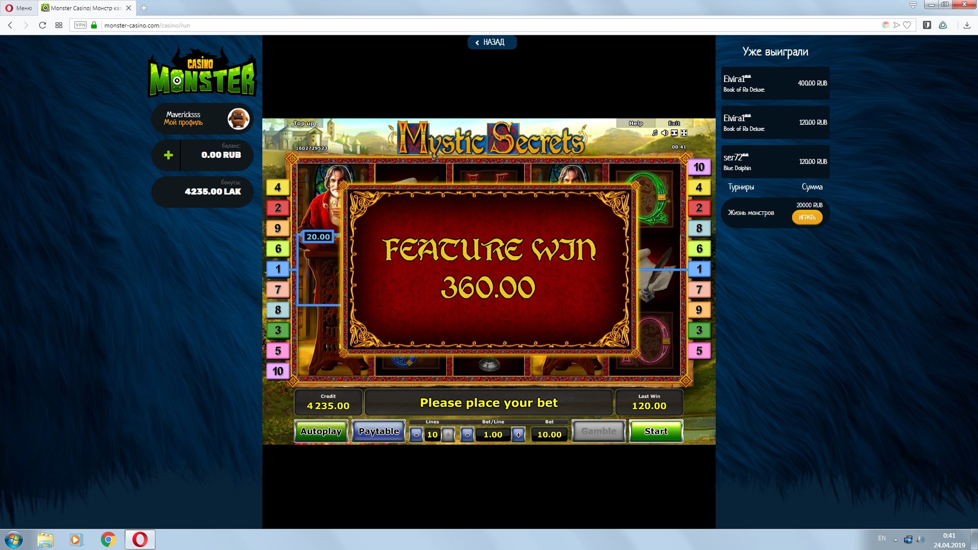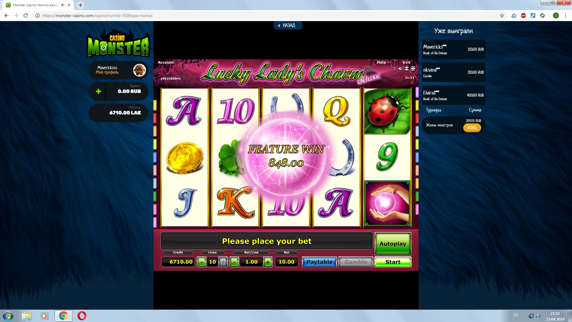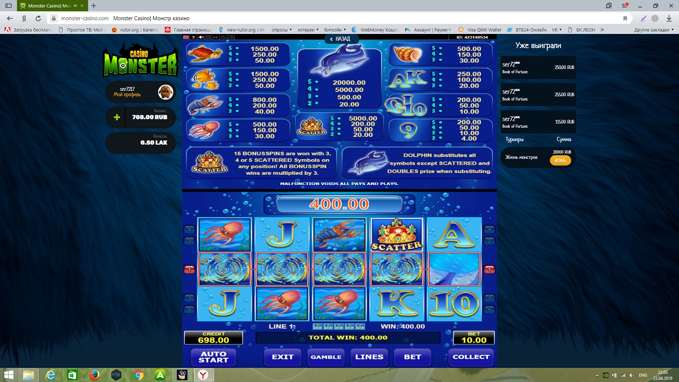 · На скриншоте должно быть видно, что он сделан в Монстр Казино, а так же дата и время.