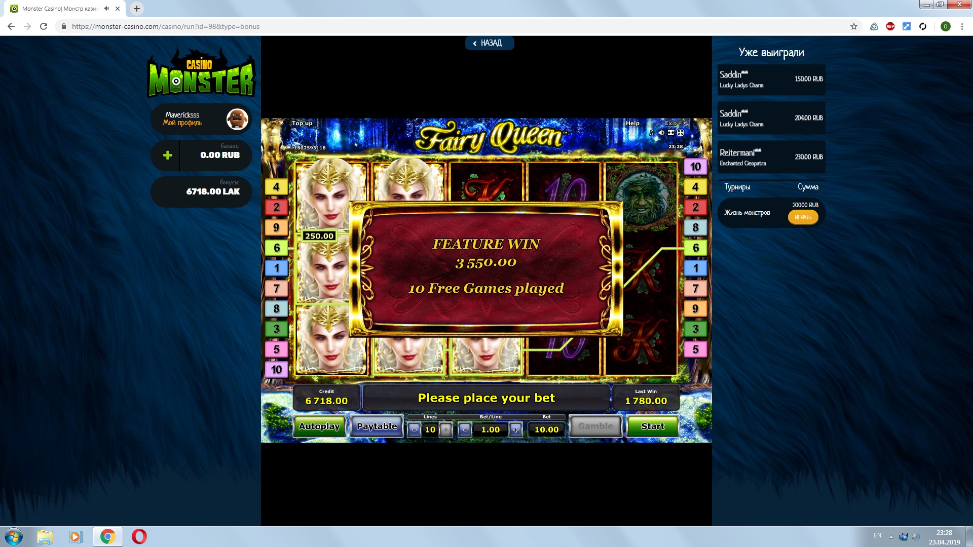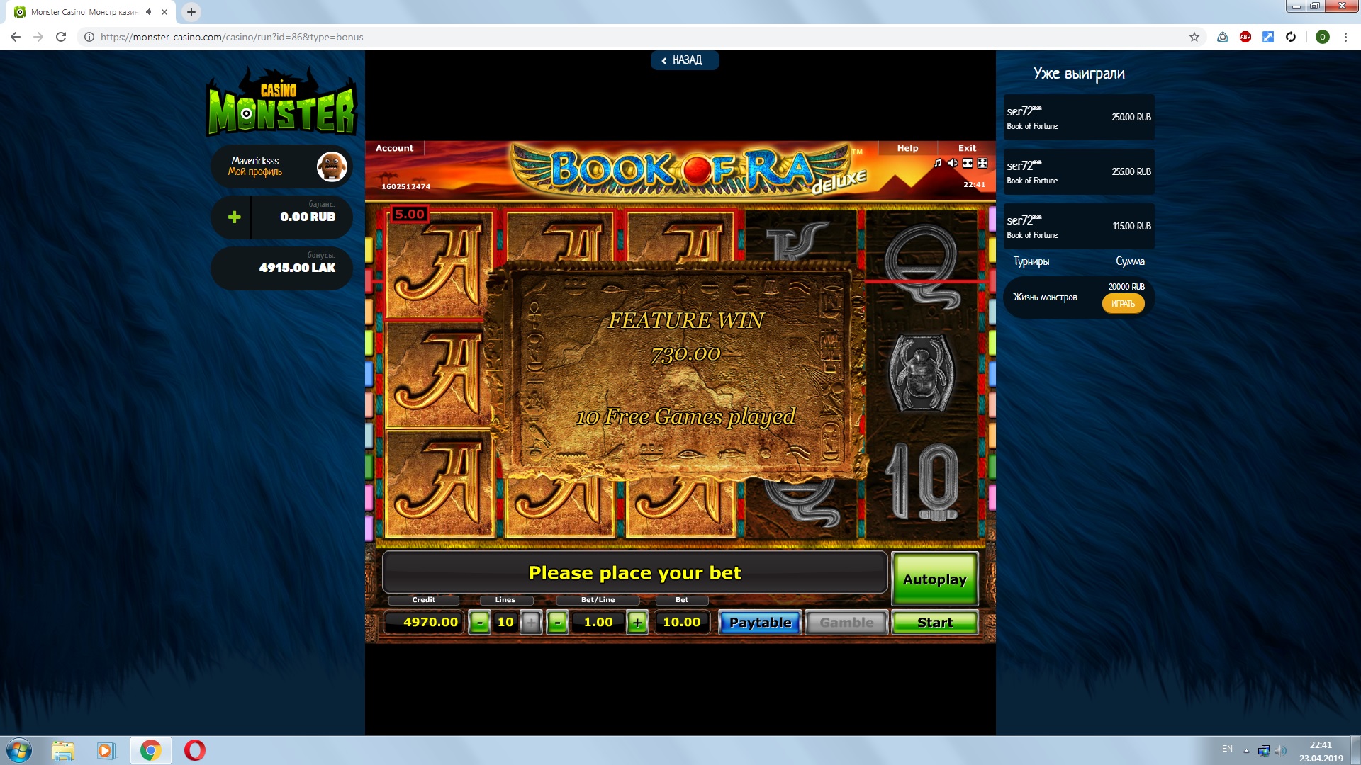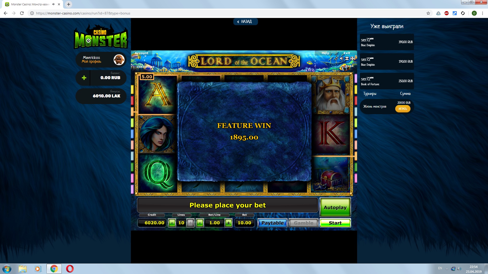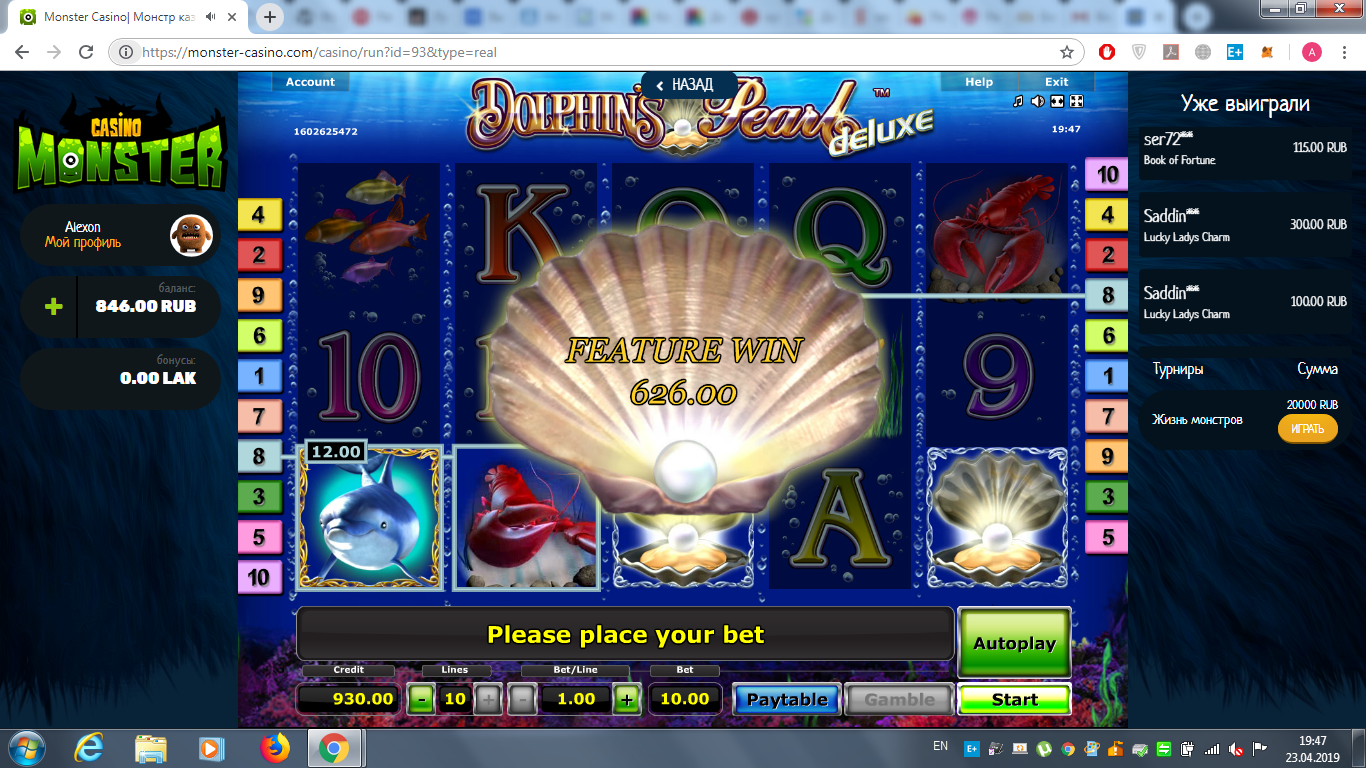 · На скриншоте должно быть видно, что он сделан в Монстр Казино, а так же дата и время.