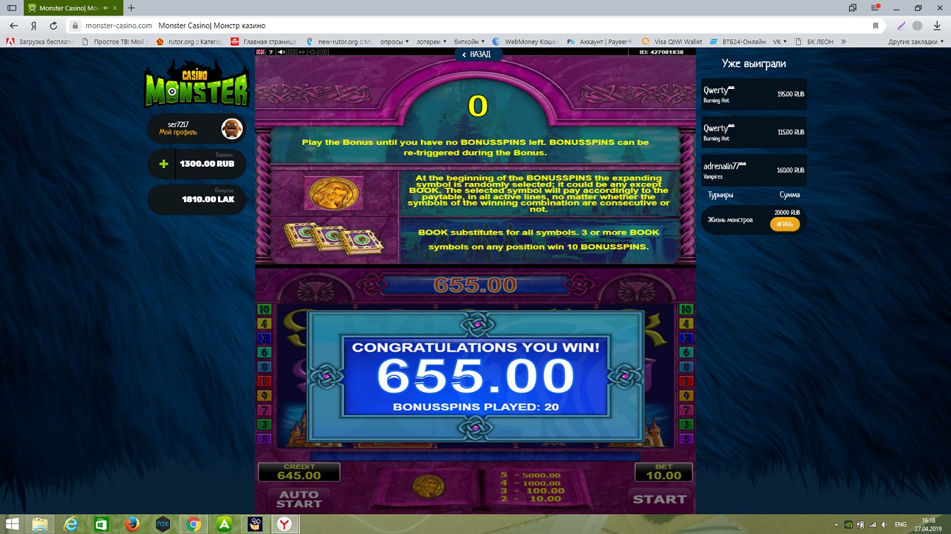 Ну что, поднажимаем перед праздниками и побеждаем монстриков?)) Заходи и играй на Монстр Казино!