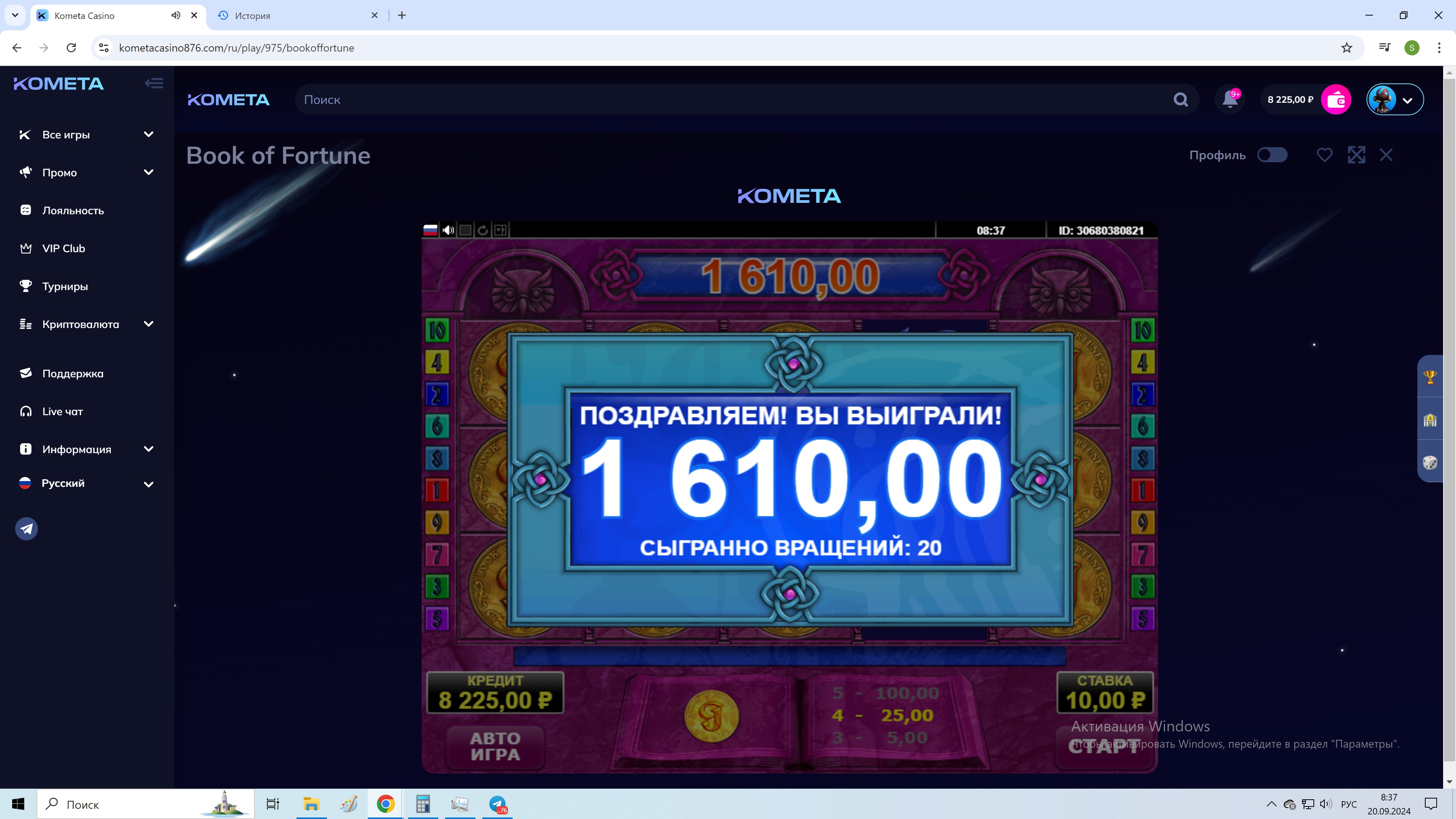 Нет? Тогда регистрируйся по промокоду CASINOMY и забирай 200% + 100 FS + 5$ free bet при первом депозите от 2000 руб!