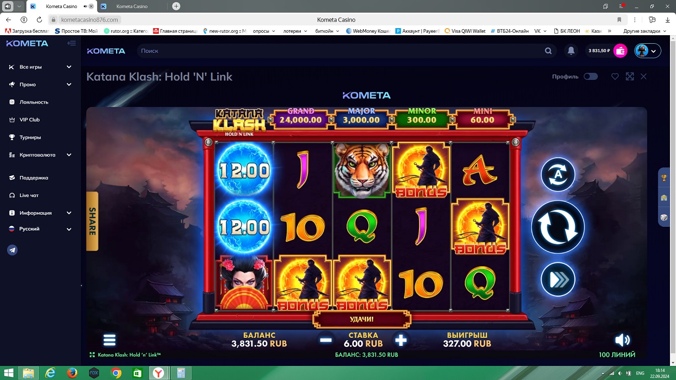 Нет? Тогда регистрируйся по промокоду CASINOMY и забирай 200% + 100 FS + 5$ free bet при первом депозите от 2000 руб!