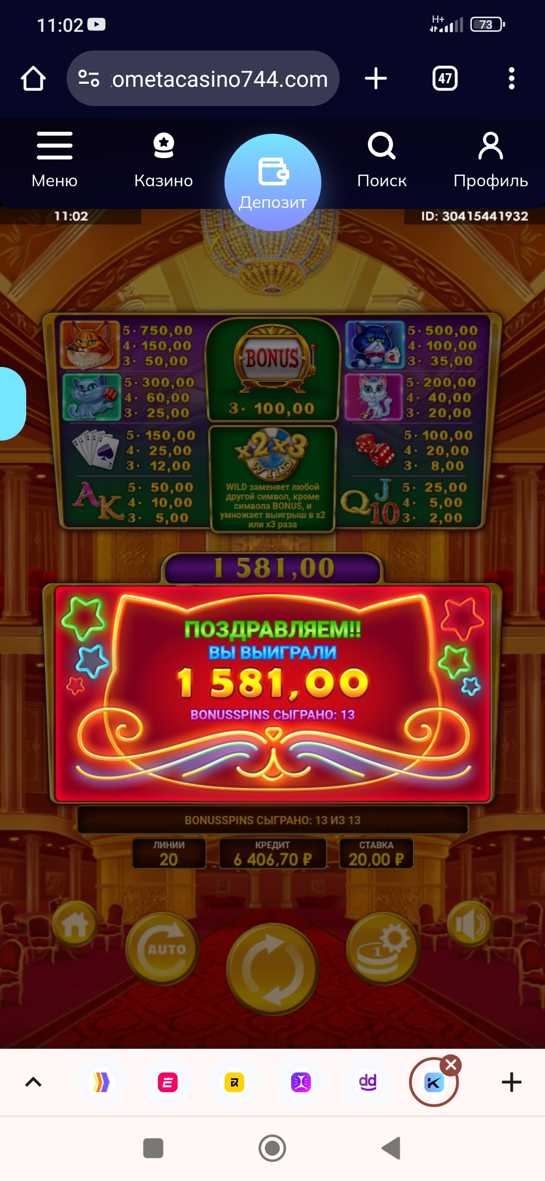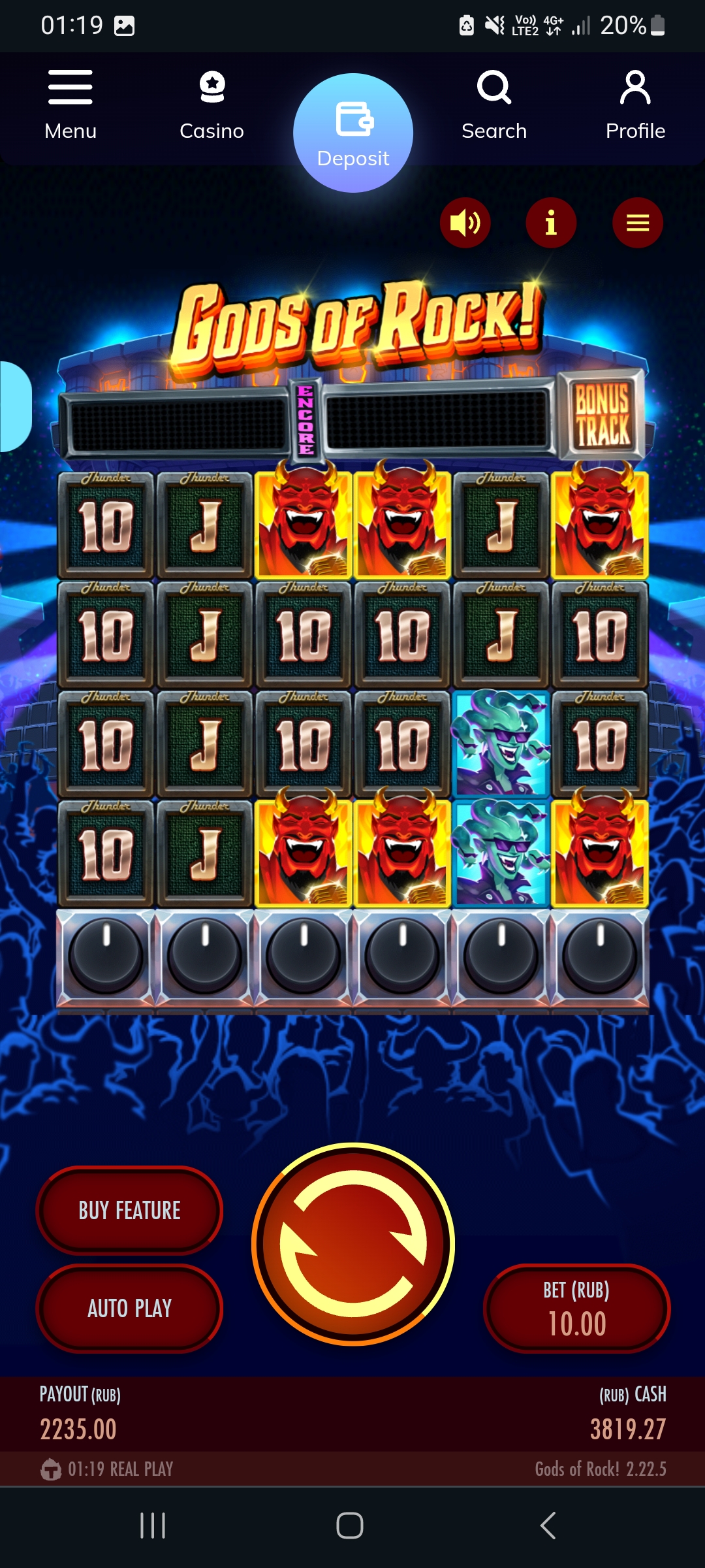 Уже кончилась походу, до 50к поднял балик и усе, больше ни единой бонуски, играя по 20р, сожрало 40к, не видя бонусовПошла отдача? Пойду тоже депну что ли )