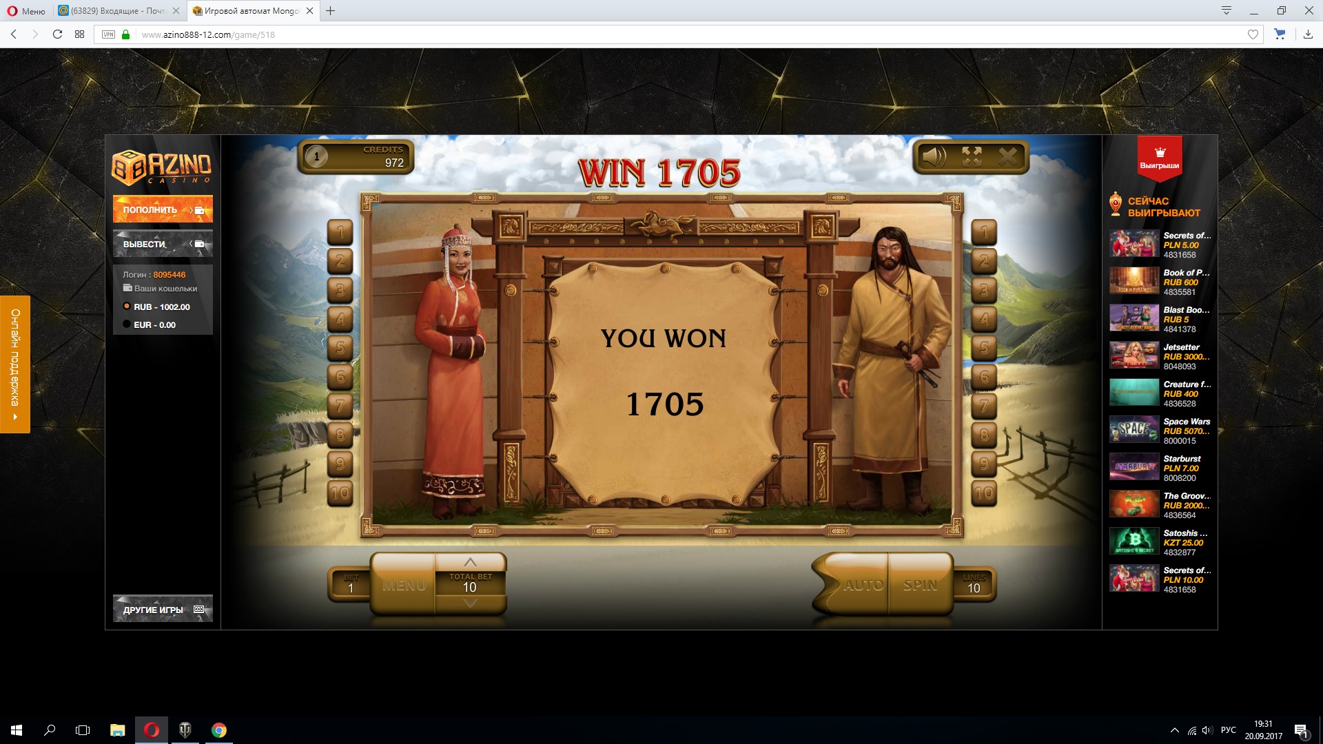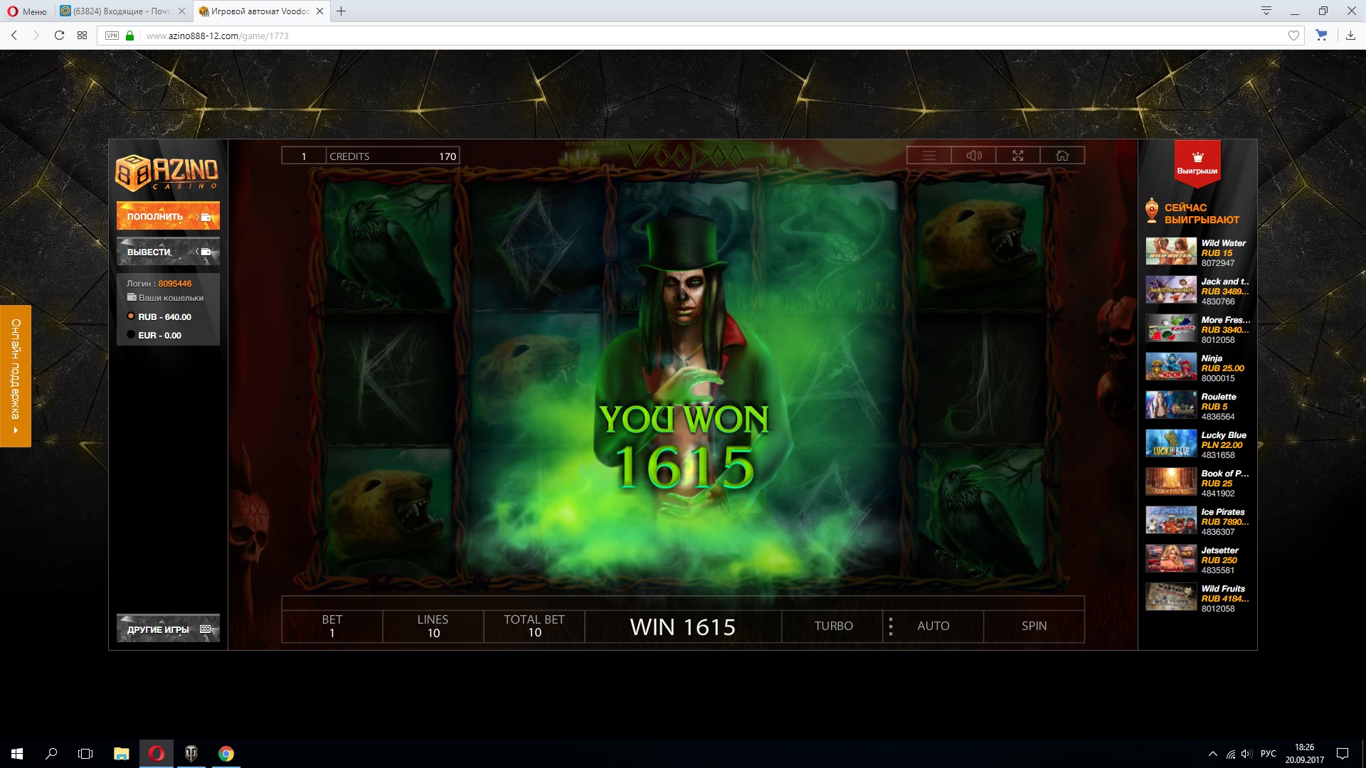 Сегодня запускаем новую гонку скриншотов от нашего казино Azino888!