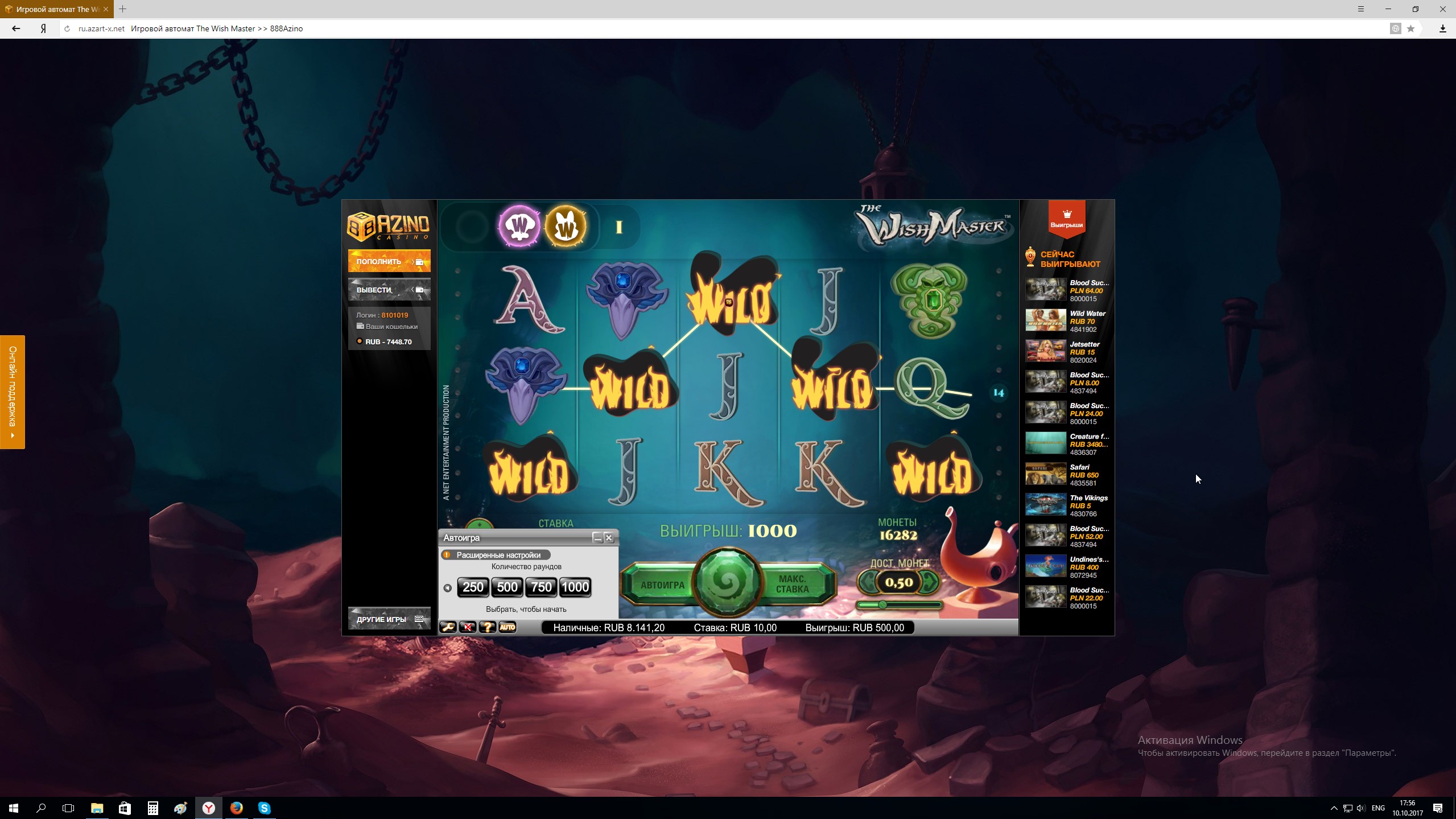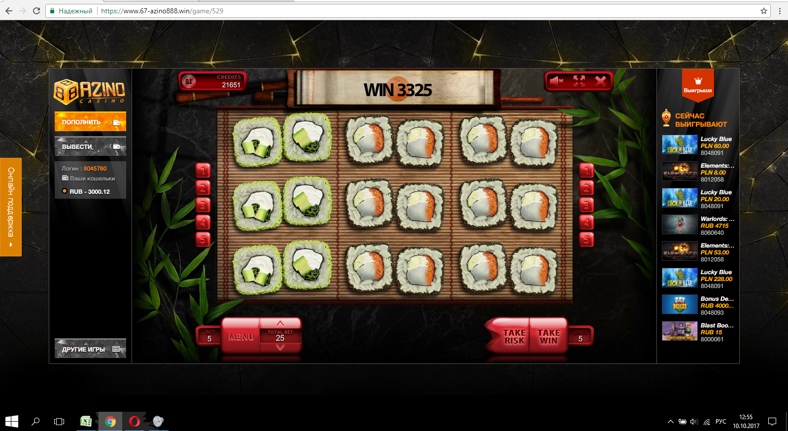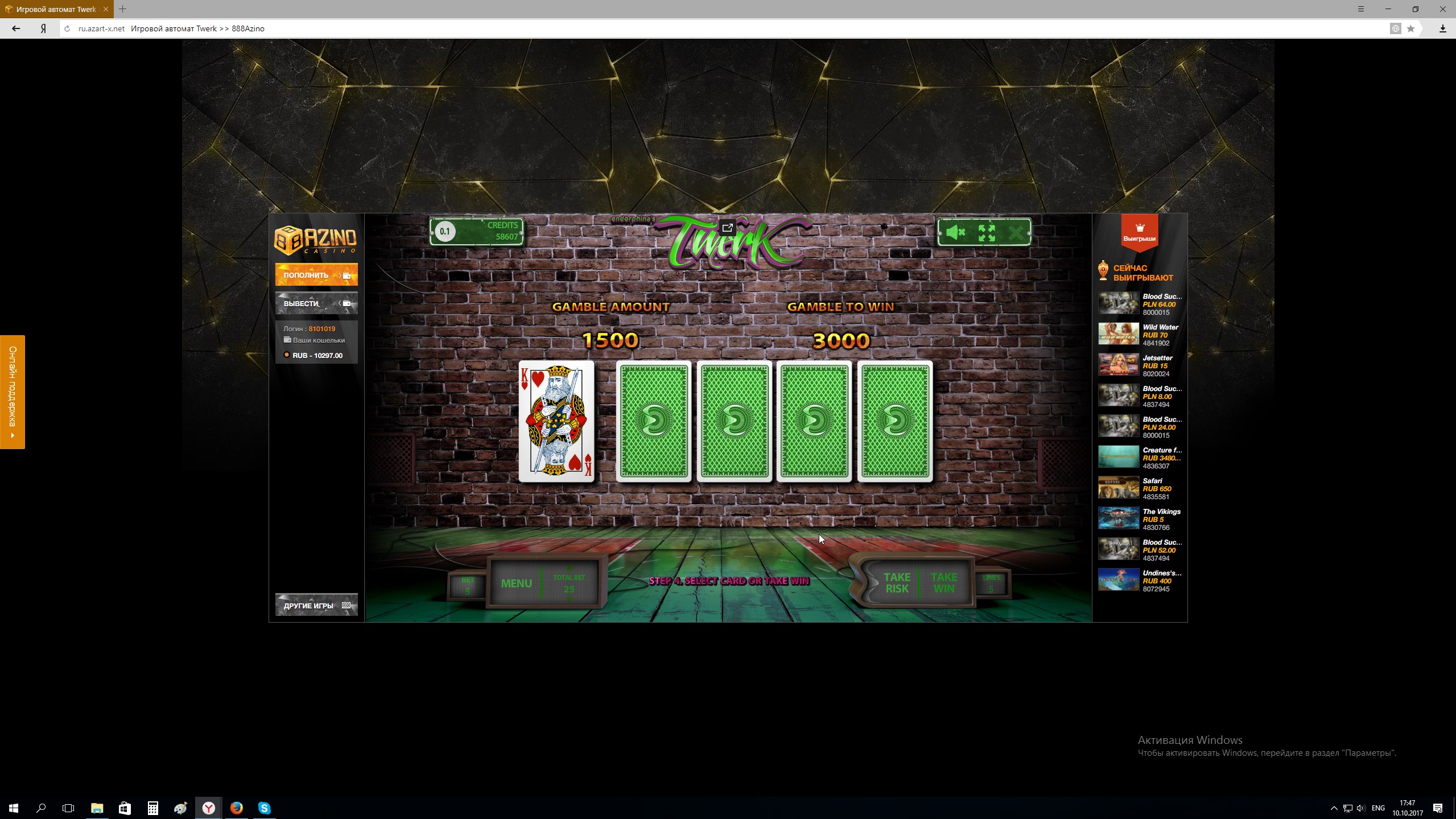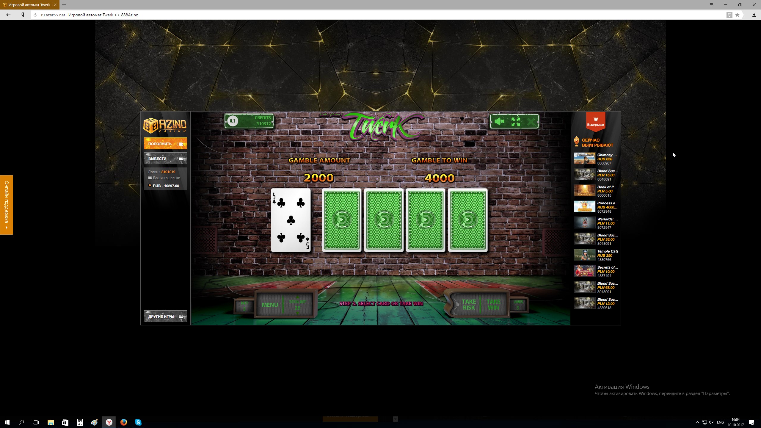 Конкурс Гонка скриншотов в Azino888 на 65000 рублей