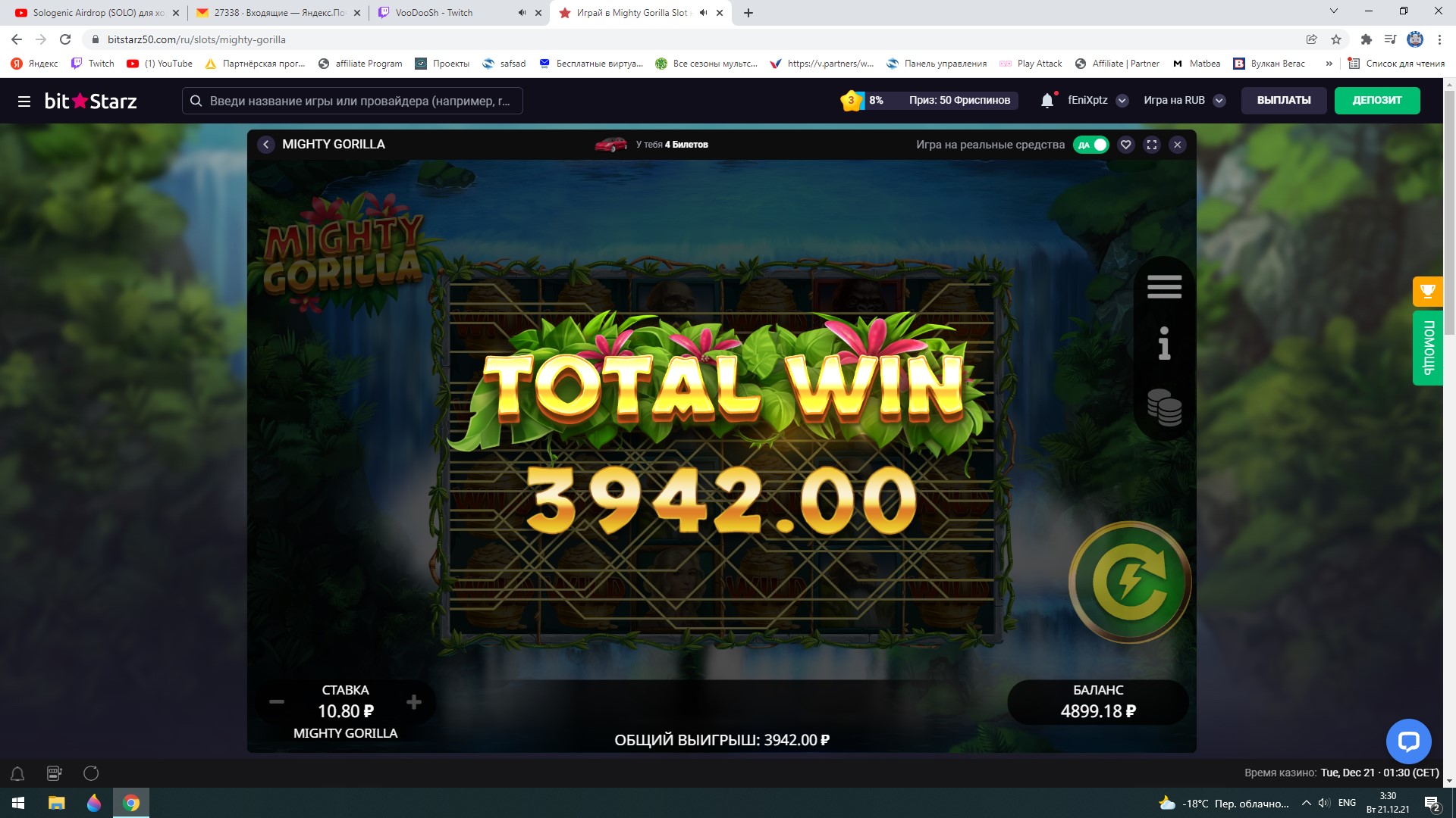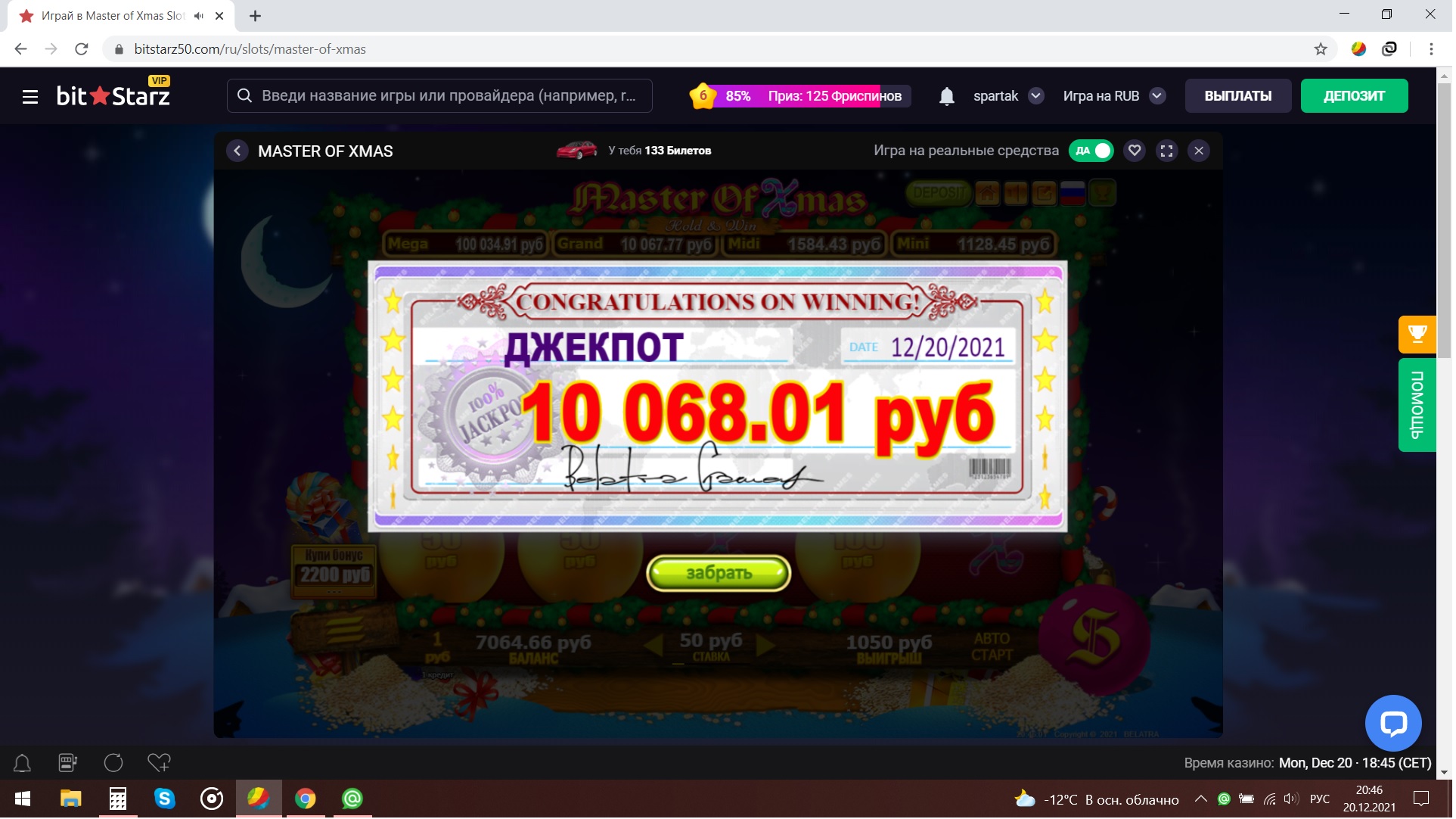 Я тоже в Битах плюсовой,но меня не блочат.Обрадовал занос (на фрихи хватит) и быстрый вывод.Всем участникам Желаю Фарту и Удачи наловить Х-совок!!))) Посоревновался бы с вами,но увы)) Биты меня навсегда блокнули, я хз за что, наверное из-за плюсовости)))