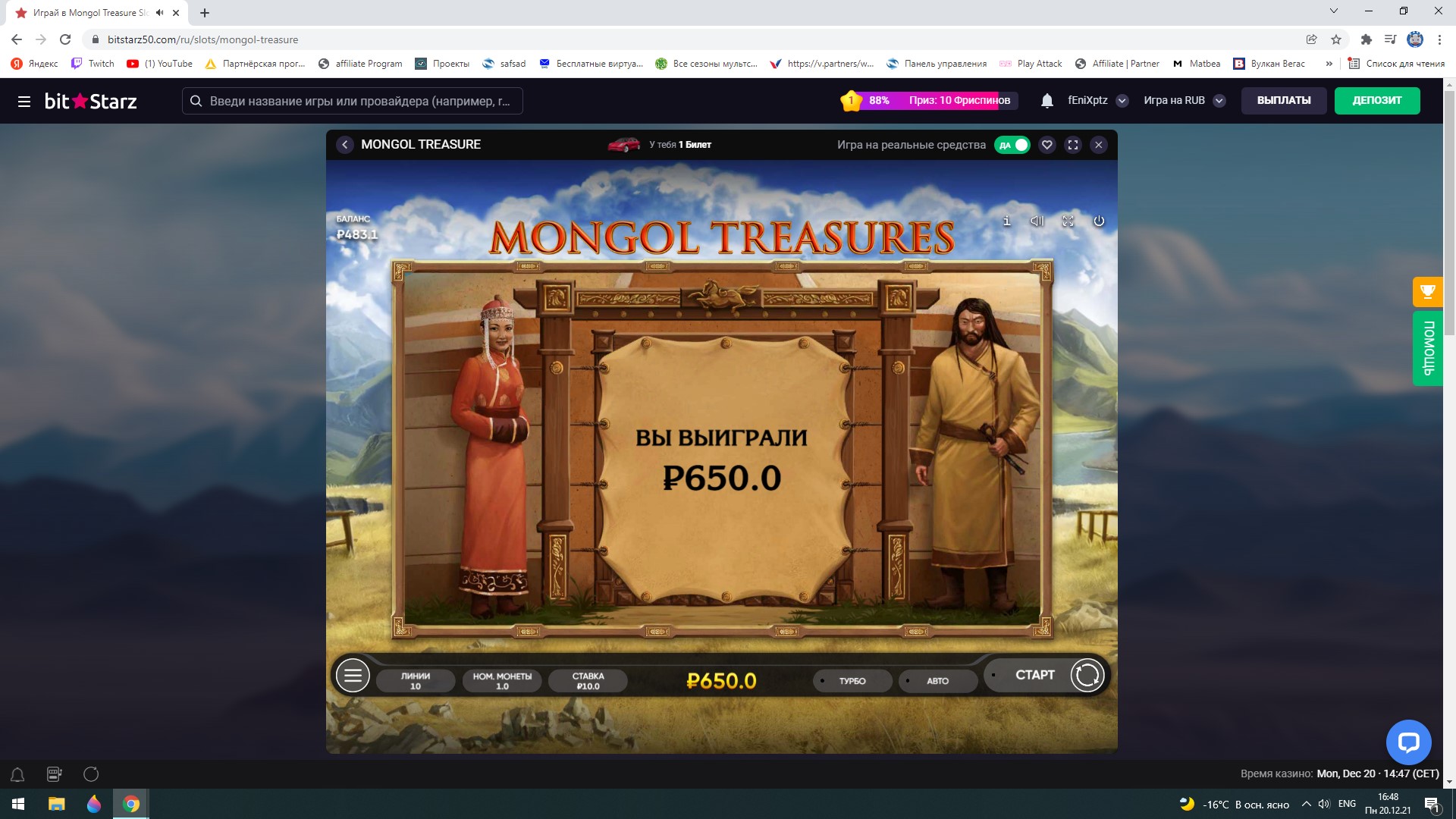 Если хочешь, могу узнать, в личку кинь логин в казино и почту...Всем участникам Желаю Фарту и Удачи наловить Х-совок!!))) Посоревновался бы с вами,но увы)) Биты меня навсегда блокнули, я хз за что, наверное из-за плюсовости)))