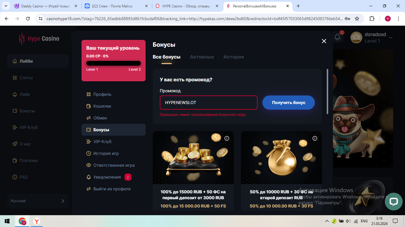 РЕГИСТРАЦИЯ И ПЕРЕХОД В КАЗИНО HYPE