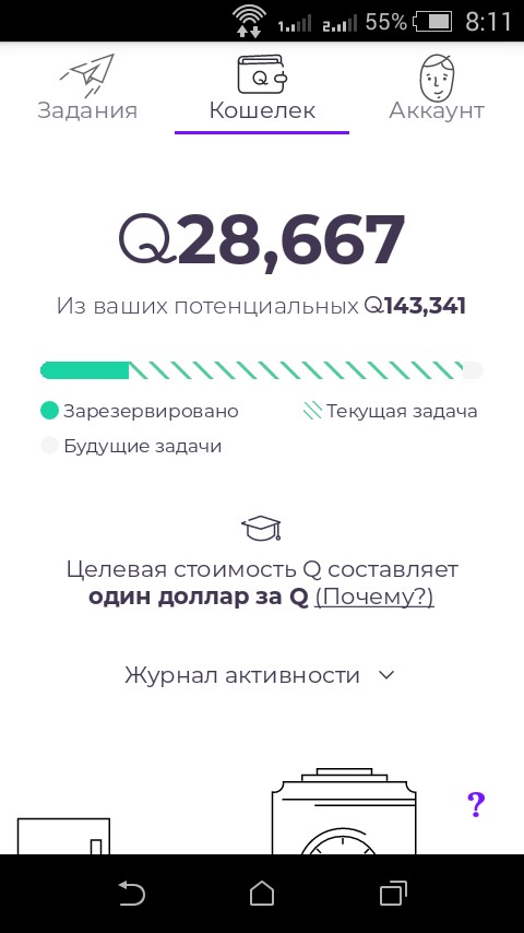 ничего не вкладывая получаем 3.374 Q за регистрацию и установку мобильного приложения,а вдруг раскрутится