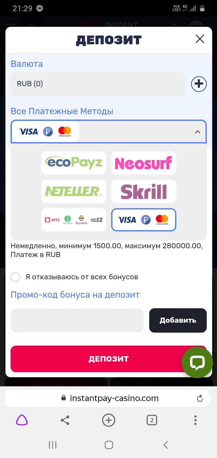 Бонус на депозит instantpay casino с мгновенными выплатами, обзор, отзывы, играть