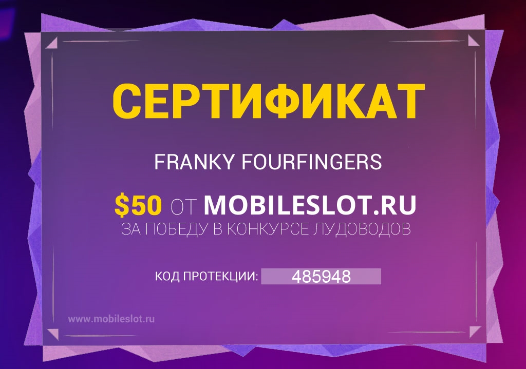 Сертификат победителя конкурса лудоводов - Franky Fourfingers.jpg