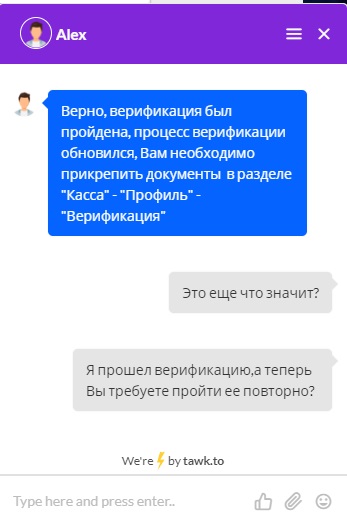 после получения письма о верификации ДОПОЛНИТЕЛЬНО уточнил в чате все ли в порядке с моим аккаунтом,достаточно ли документов им отправил,и есть ли у них какие либо еще пожелания))