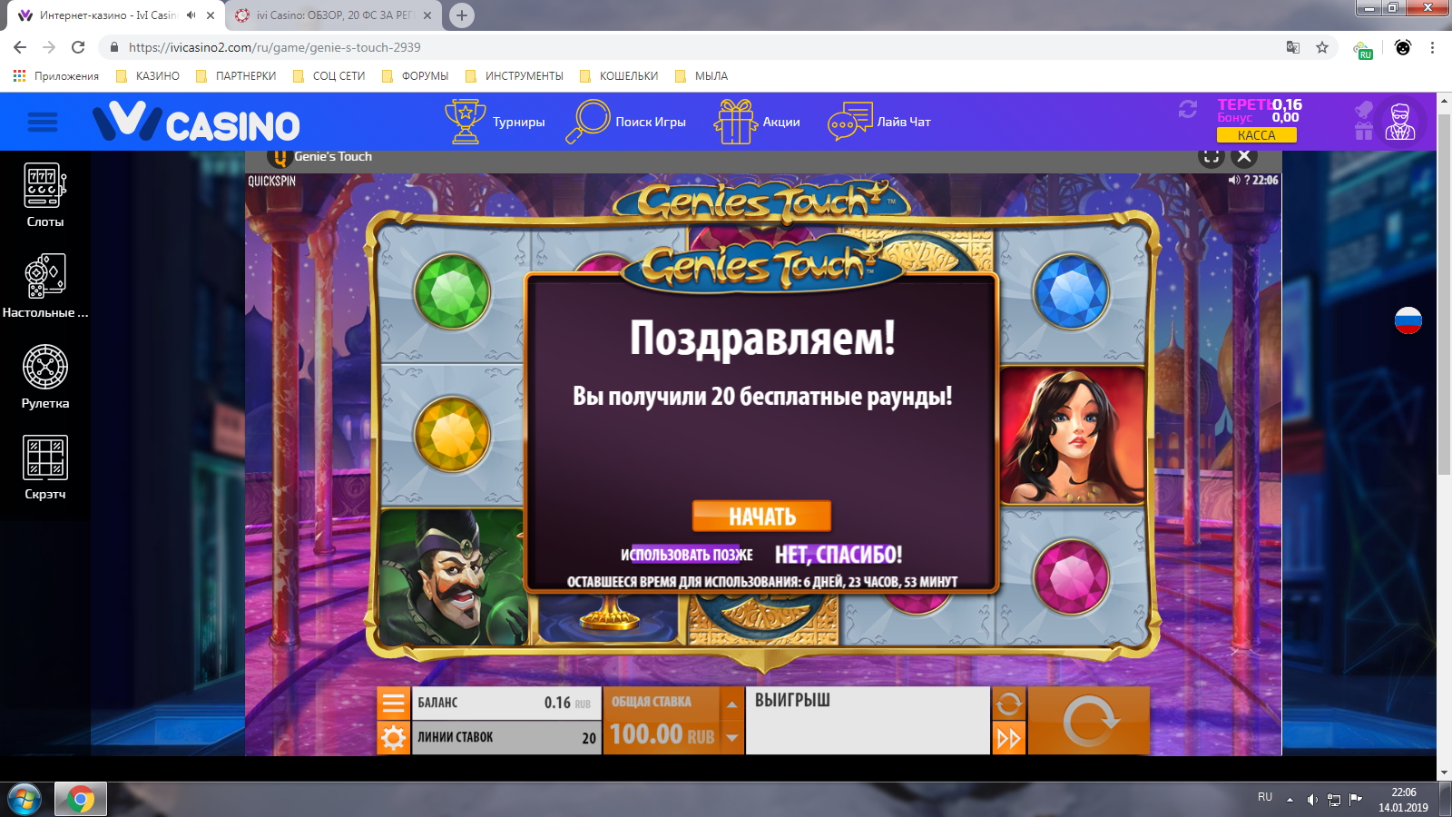 Мы сожалеем если каким либо образом ввели Вас в заблуждение. Мы ценим Вас как нашего игрока и в качестве благодарности за Вашу лояльности зачислили Вам 20 вращений в игре Genie’s Touch (QuickSpin) на Ваш счет. Желаю Вам удачной игры!