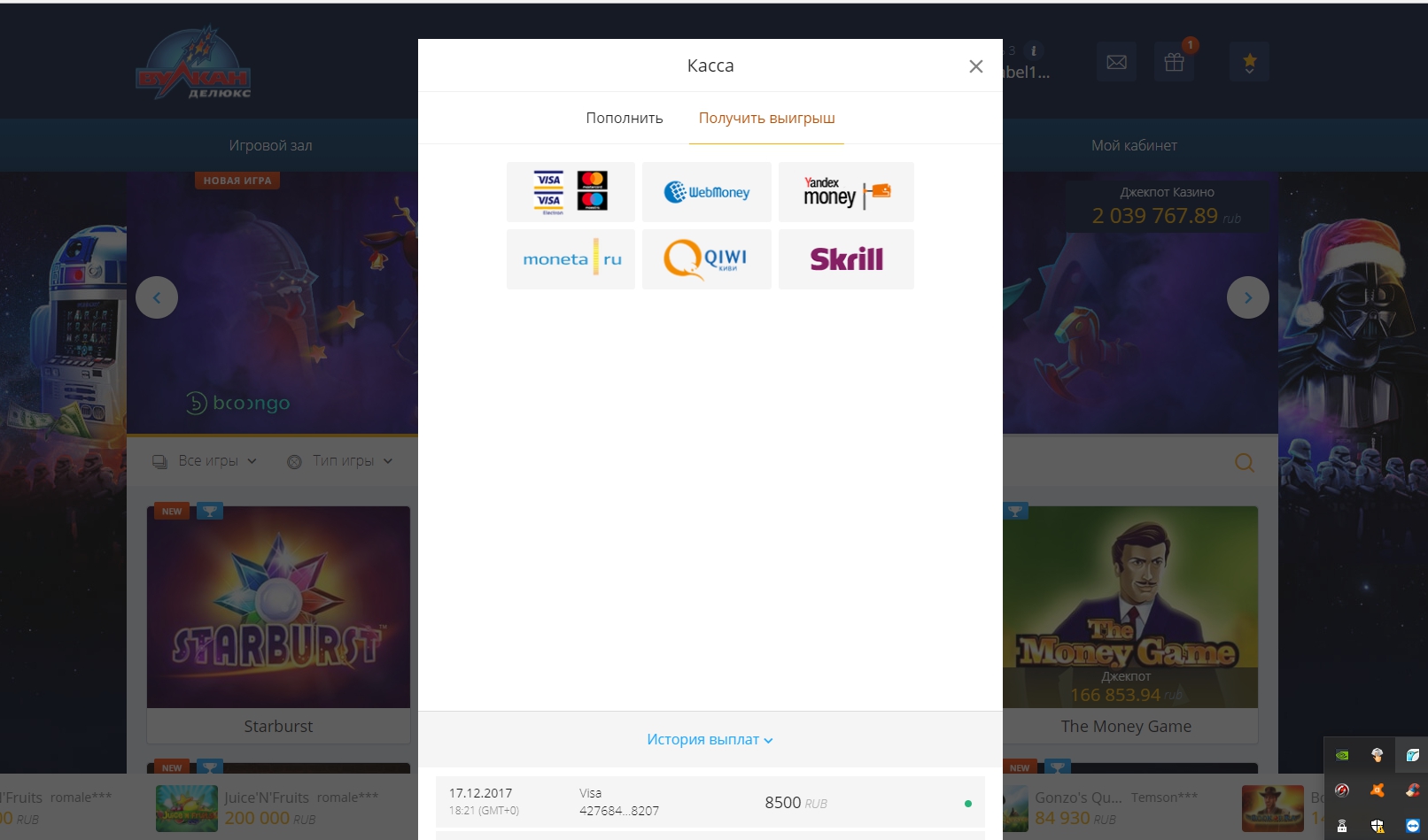 Деньги пришли опять за 2 часа,благодарность отправлена!общий выйгрыш со 100р(два депа по 50р в два казино) 11500