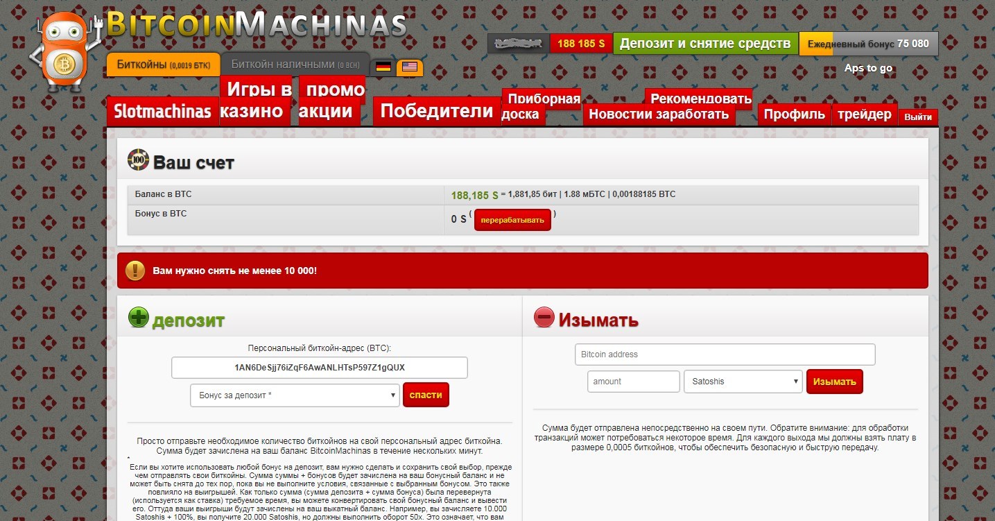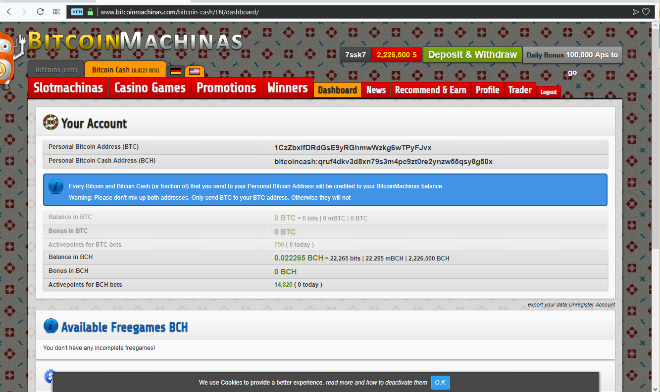 В этот же день можно, там во второй партии меняешь вкладку с биткойн на биткойн кеш и заходишь в профиль, будет показан слот в котором спины, заходишь в него и делаешь ставку минимальную (1000)Так и не догнал до конца, вторую партию 111 спинов через 24 часа после регистрации получаешь или можно в этот же день сразу активировать, просто тупо баг, проблемы с активацией? Подскажите![]()