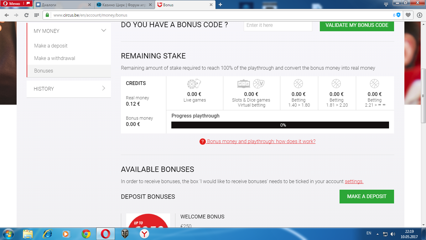 Также введите свой номер мобильного телефона на странице «Мои данные» в вашем аккаунте и наслаждаться € 5 бонусом . Условия у бонусов схожи. Смотрите у них в бонусах акций, может чего приметите для себя. Удачи .