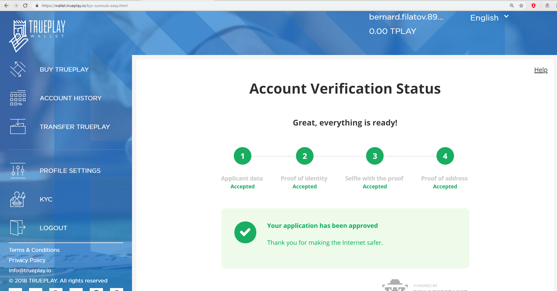 Затем я прошел полную проверку моих документов на сайте trueplay