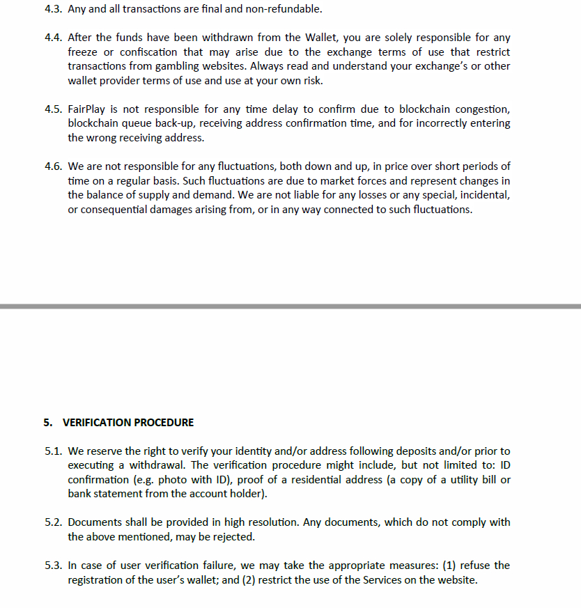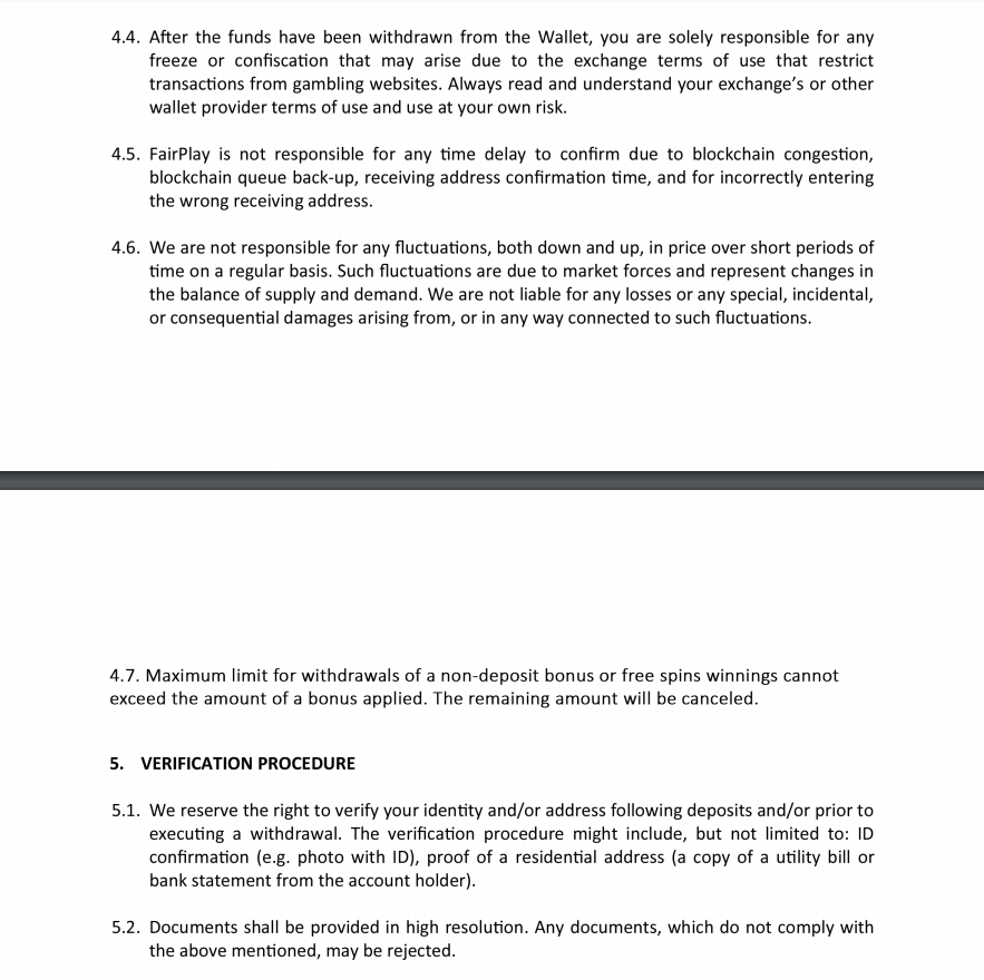 Ну понятно, решили лгать до конца, вот pdf файл скачаный вчера 05/11/2018 с сайта fairplay и в нем нет пункта 4.7, я понимаю что вы уже ничего не заплатите, но для всех очевидна ваша ложь.Кто будет делать депозит к тем кто меняет правила на ходу? Мошенники.