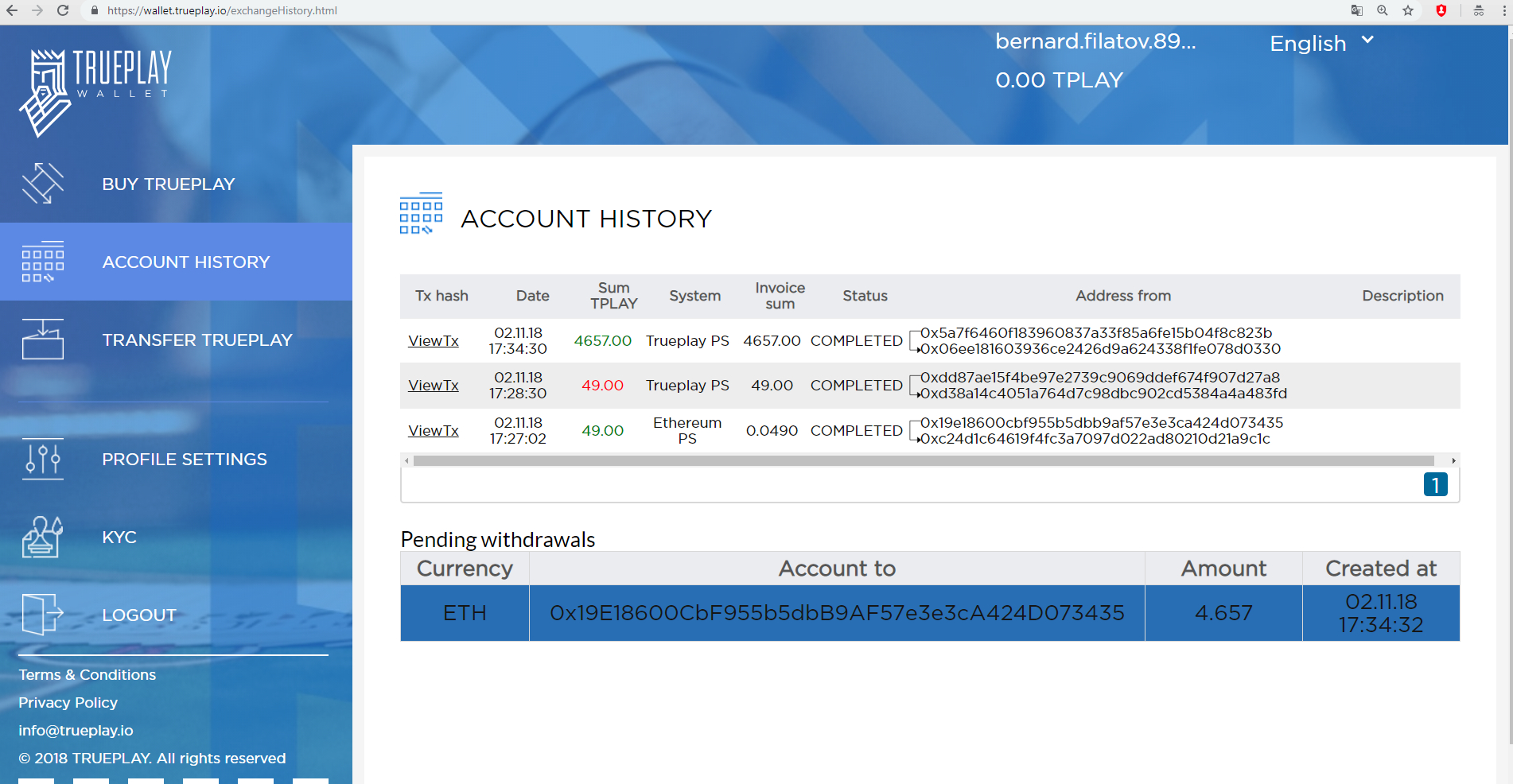 Деп 50 TPLAY (0,05 ETH) мелочь, но все же.