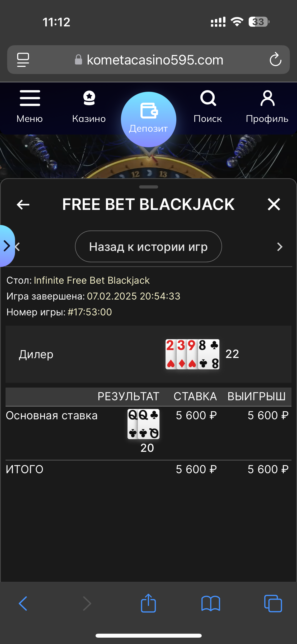 Фреебет блек джек смотри правила если у дилера 22 значит у вас ничьяНи чего не понял , выиграл раунд , а вместо 11200₽ , 5600₽
