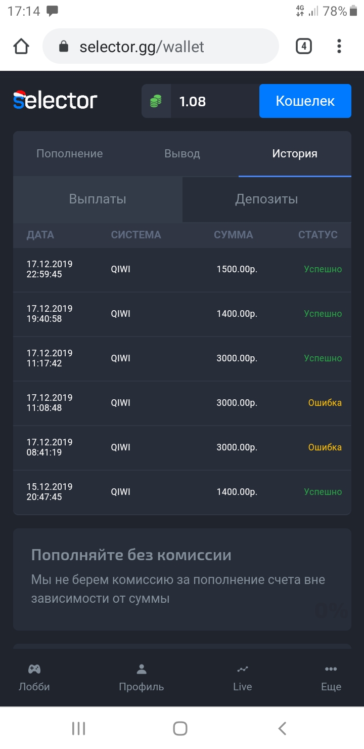 Черный список Казино Selector: колесо с бездепозитным бонусом, обзор,акции,бонусы!