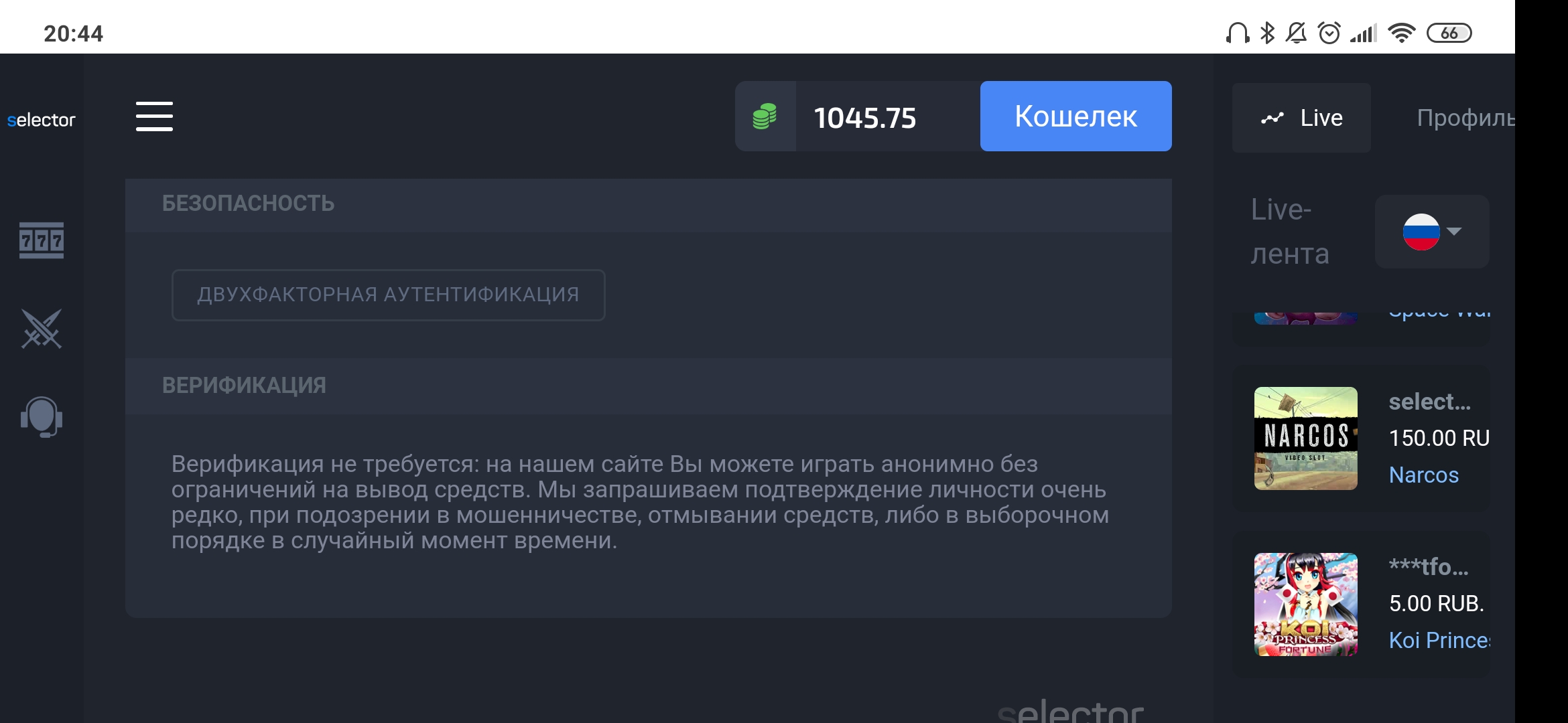 Черный список Казино Selector: колесо с бездепозитным бонусом, обзор,акции,бонусы!