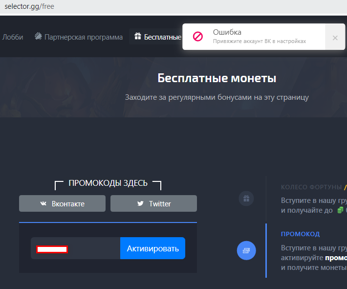 Даже код активировать не могу.Пишет привяжите аккаунт вконтакте.