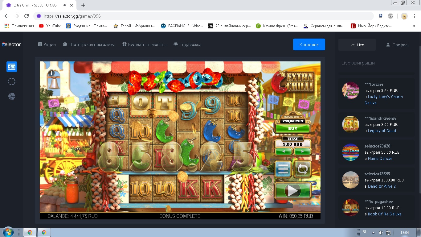 Черный список Казино Selector: колесо с бездепозитным бонусом, обзор,акции,бонусы!