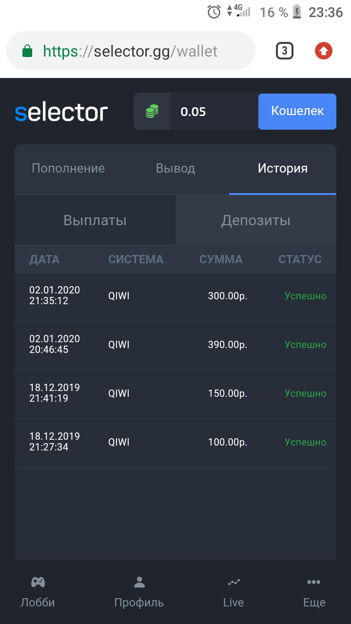 4 депозита и 0 выводов,баланс выше депа не поднимался,больше туда ни копейки не внесу