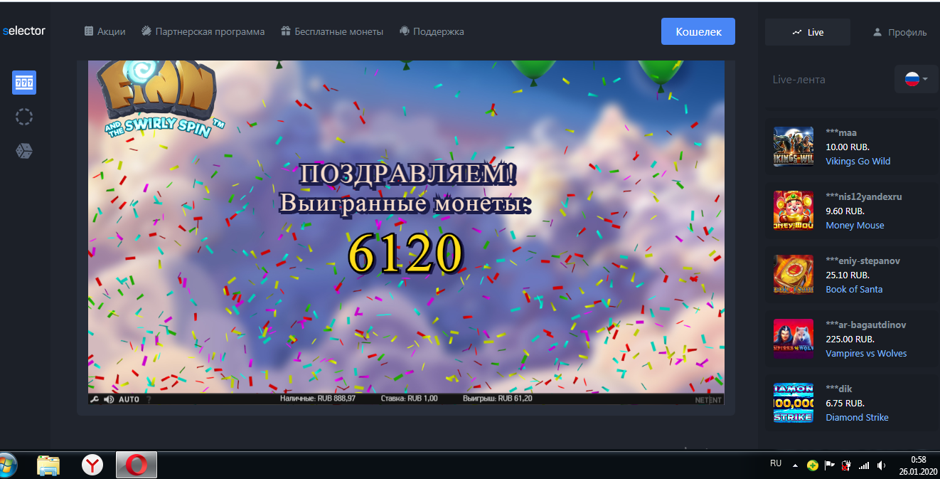 Черный список Казино Selector: колесо с бездепозитным бонусом, обзор,акции,бонусы!