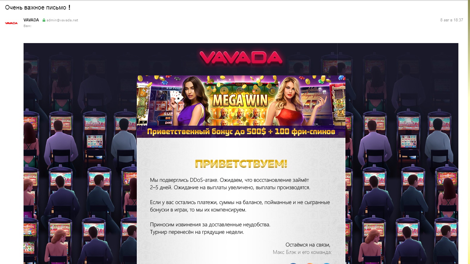 Серега) всем пришло письмо такое) но у меня без проблем работает сайт. Поэтому и играть можно)Странно как то...