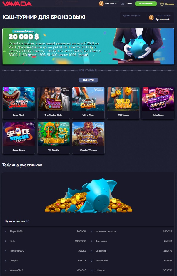 Правда как-то странно у них сделано это.Получается что если в момент окончания турнира не проследить свое место в таблице,то потом нигде это не увидеть.Ни сообщения никакого,ни архива турниров.Да и непонятно когда призовые начисляют,нигде инфы об этом нет.
