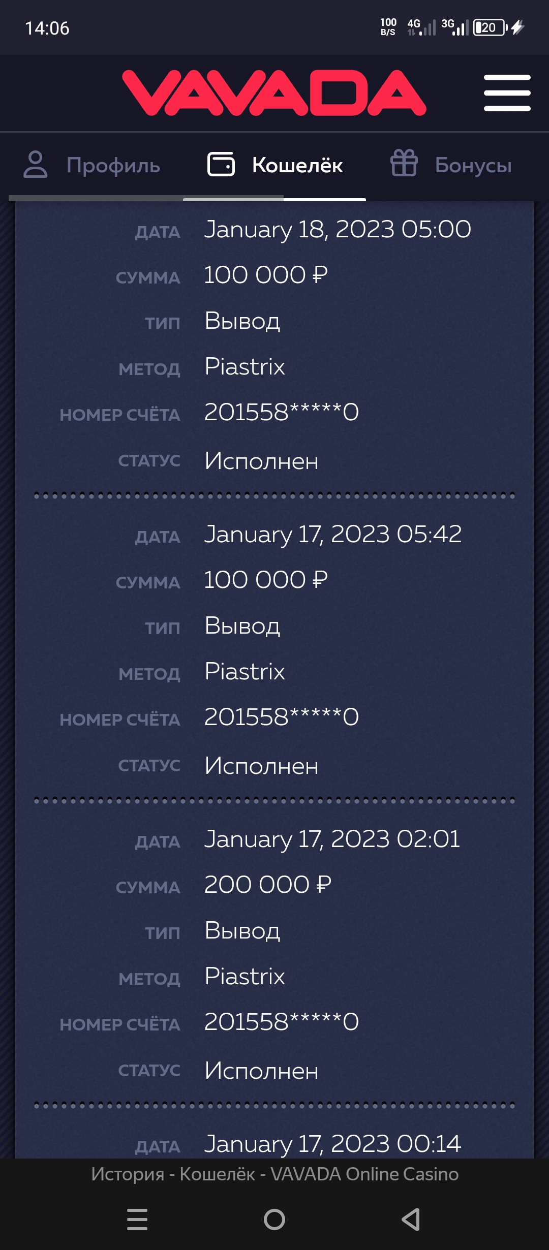 Скрина заноса не осталось (причём встало там совсем немного символов топовых с одним на 4 барабане, сразу даже не дошло сколько сыпануло пока нули не посчитал и дало с одного спина, все пустые были другие)Смог зайти только скрин вывода сделать.