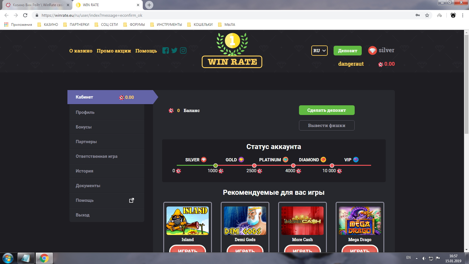 Верификация при выводе - НЕТ (от 1000 фишек требуется)