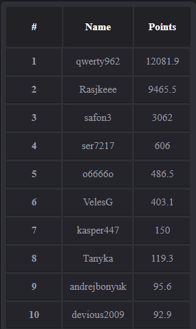 Видели турнирную таблицу?) Мне одной кажется что за первое место борьба будет жесткая?)))