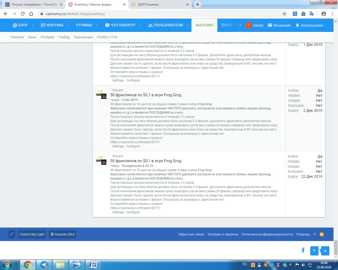 не знаешь деталей - ознакомишься - потом вставишь свою "копейку" - на счет плюшек магазина форума - я выполнял все условия как там написано (через депы бонусы) - так казино просто не активирует если не выполнены условия. Теперь возникает вопрос - какого рожна тогда эти пустые условия? Блок был якобы за нарушение игры на купоны - раньше несколько раз доигрывал - обнулял баланс после кэшаута. Мне на это указали - и более такого не допускал . И блокнули (1 раз) 5 сентября - именно когда занес - не с бонуса а с депозита. Разблокировали позднее.вернули 23 сентября только депы без выигрыша - спорить не стал.
